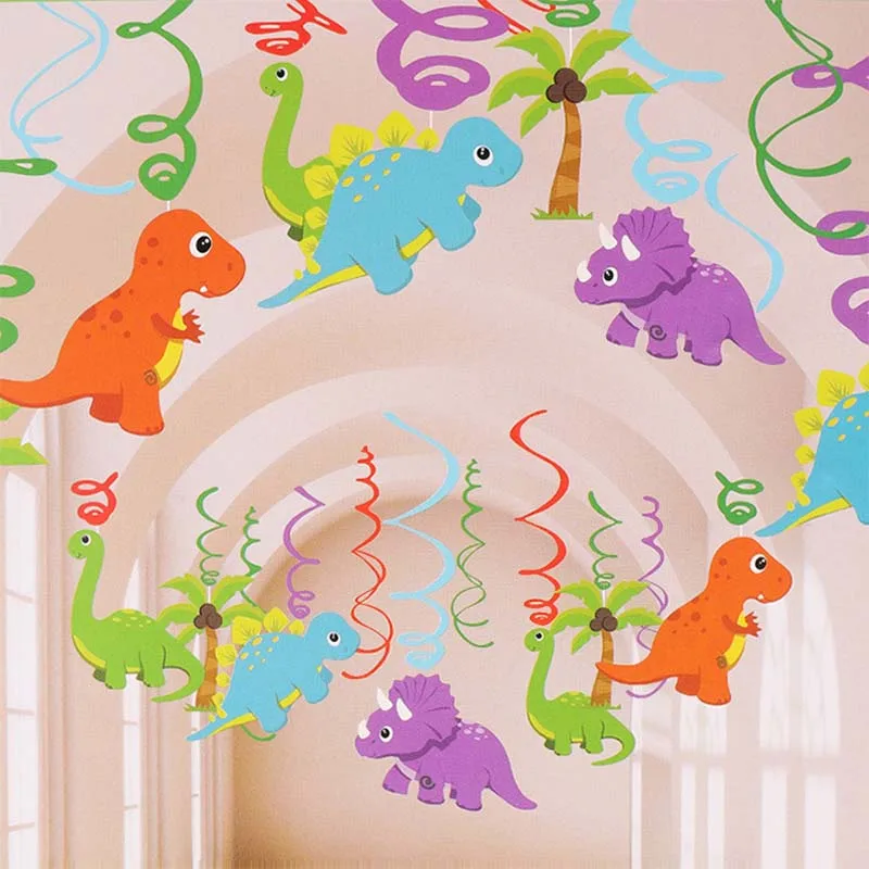 Динозавр ПВХ фольга Висячие завитки динозавр день рождения украшения Детские сувениры Юрского периода Дино потолок подвесные гирлянды поставки