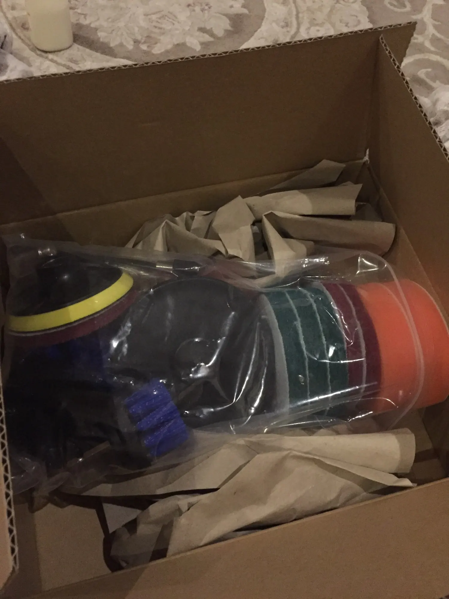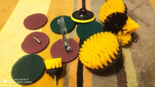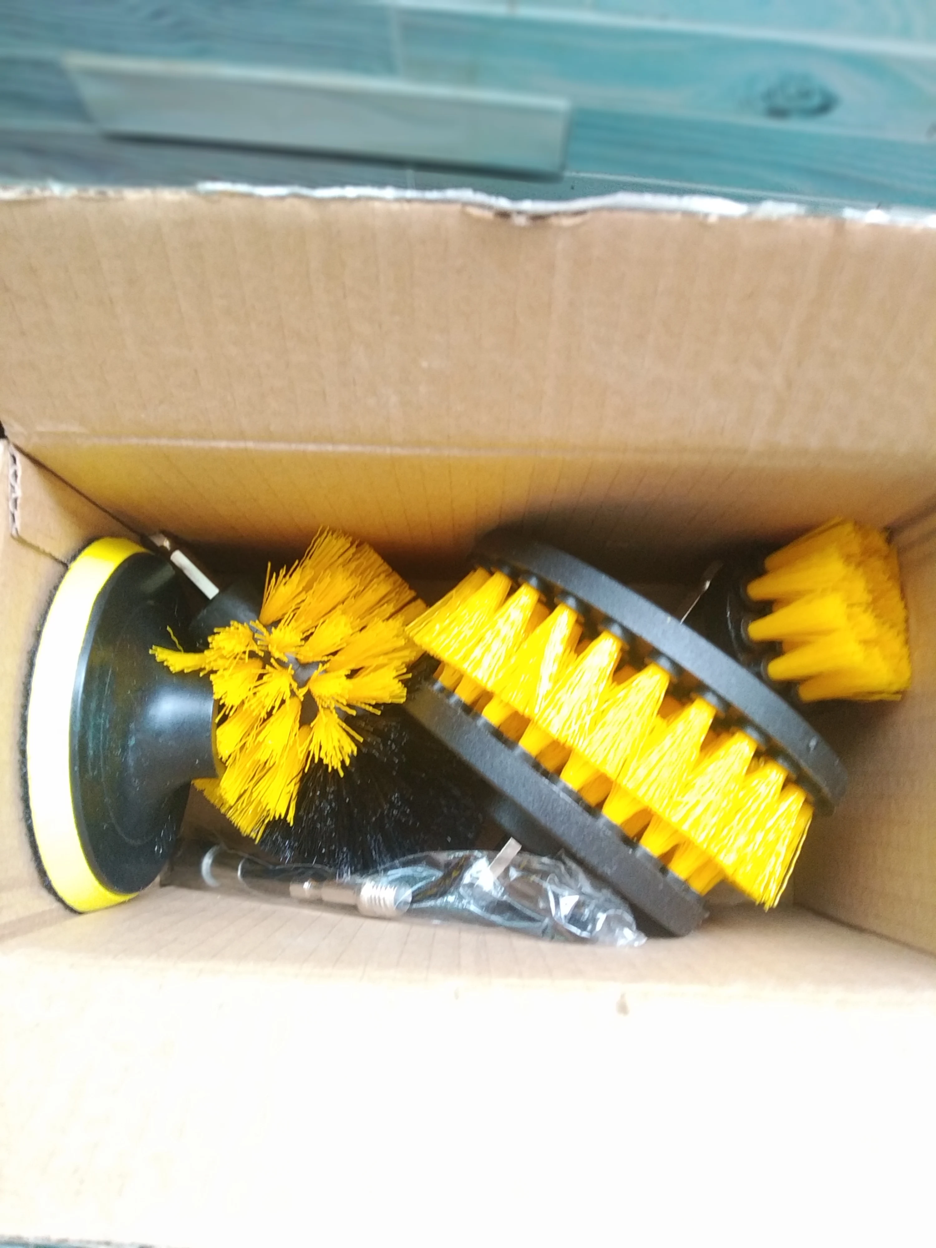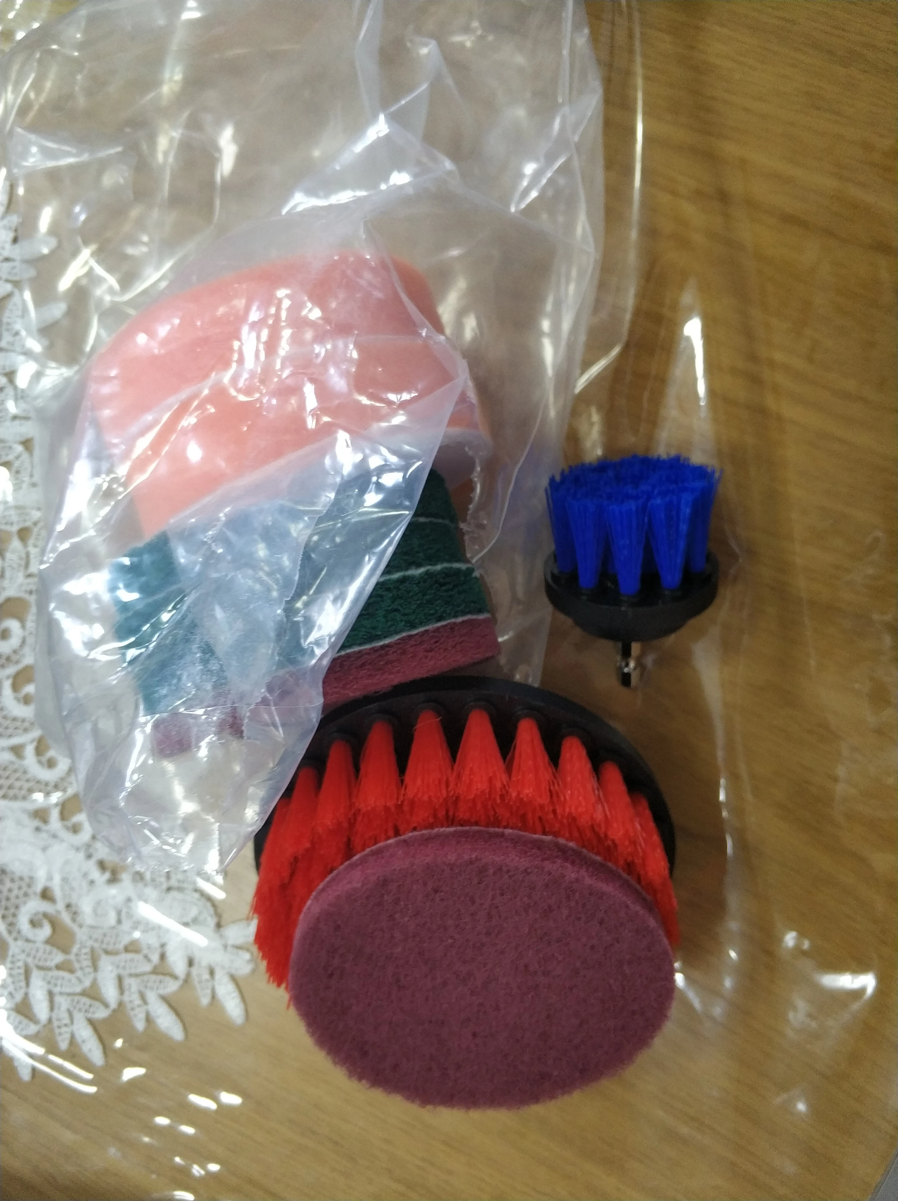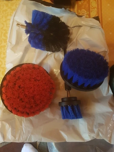 Всё пришло очень быстро(правда доставка платная), но немного помятое, но это пластик, быстро выпрямился. Пластиковые щетки оттирают большие куски грязи, маленькие кружки на липучке очень хорошо справляются с въевшейся грязью. Всем советую!