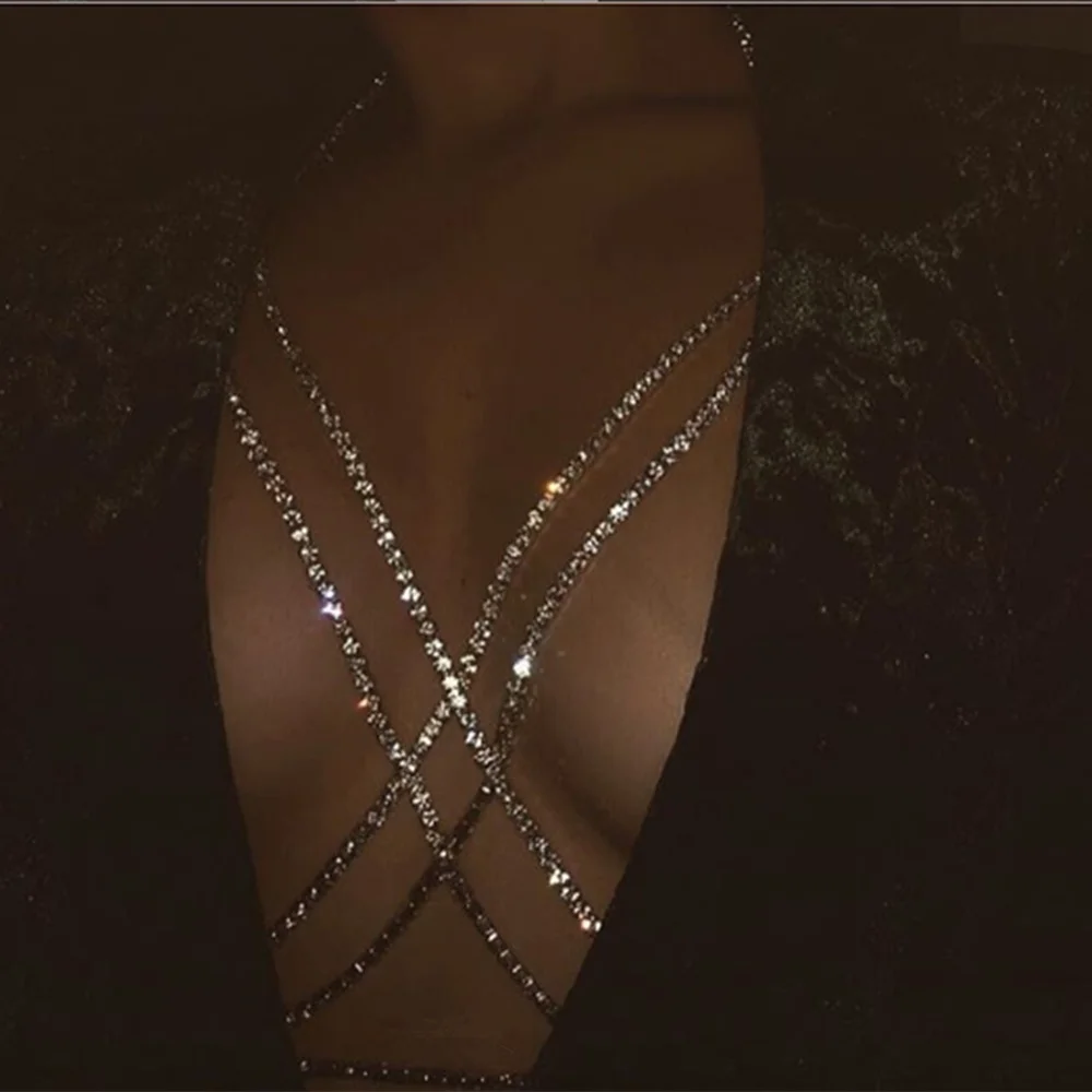 StoneFans сексуальные Стразы с цепочкой через плечо бюстгальтер для женщин Летний Пляжный чокер с кристаллами ожерелье бикини простой бюстгальтер боди ювелирные изделия