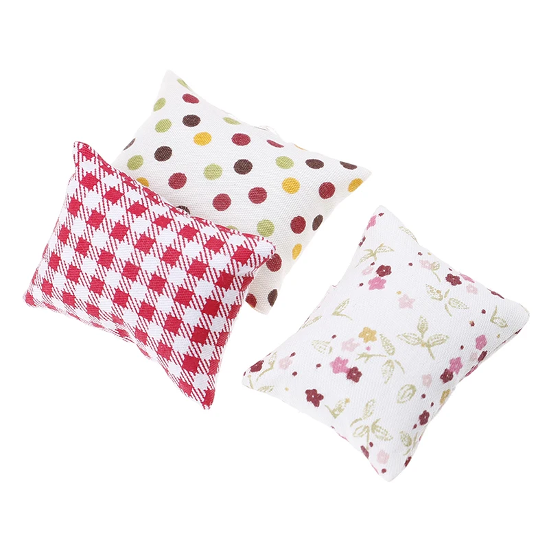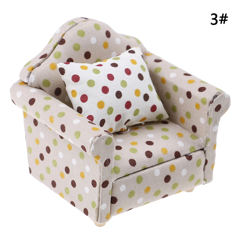 Мебель для кукольного домика в горошек 1:12, клетчатый цветочный стул, диван с подушкой, милая мебель для кукольного дома, кресло, мебель, игрушки в подарок