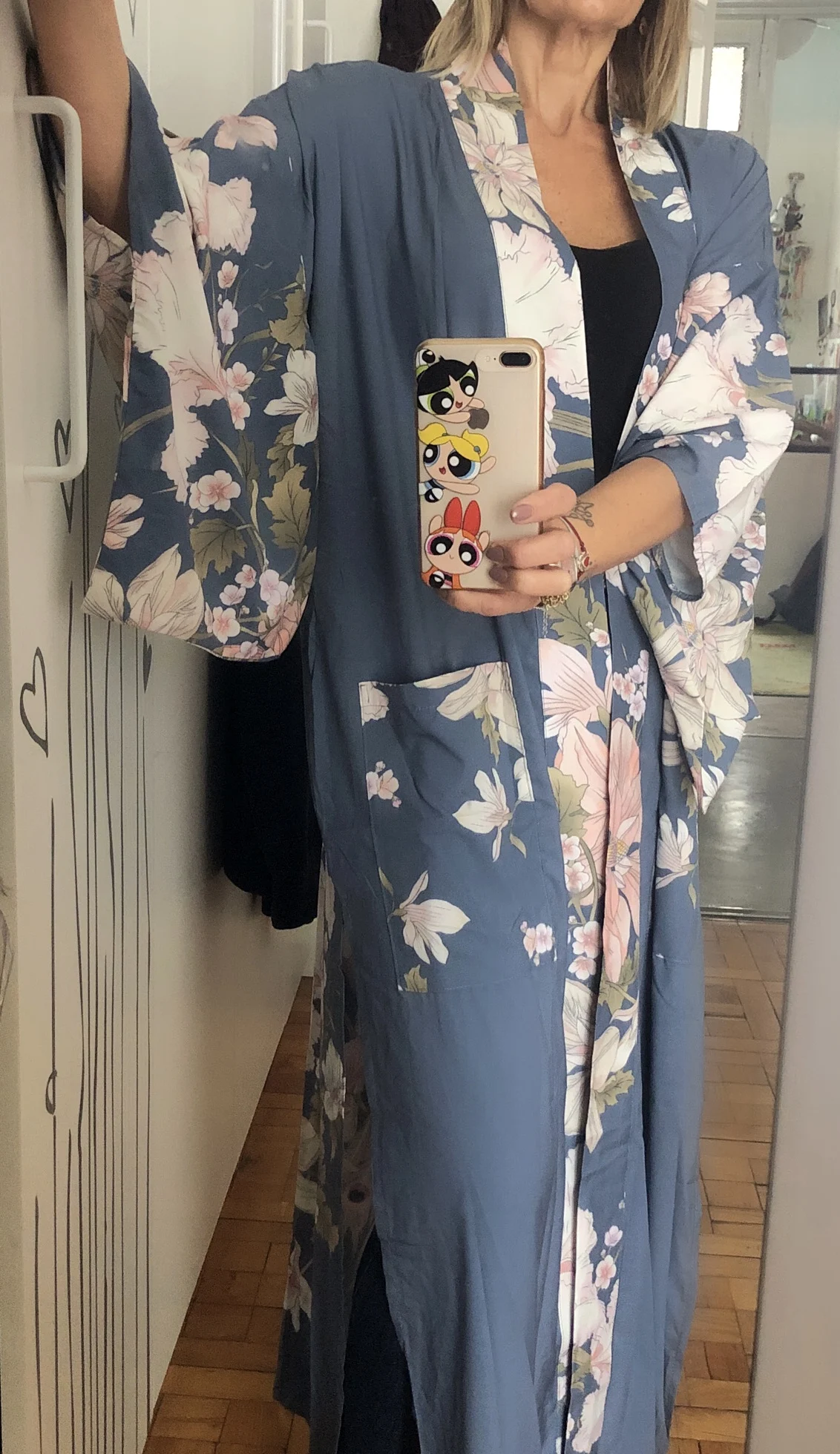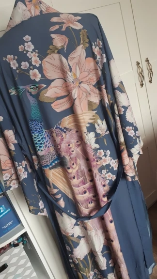 Это красиво, но на мой вкус слишком долго. Мне 1,64 и я вешу 63 кг, у меня размер 40 штанов и сверху м, и я купил размер М. Я думаю, что это правильный размер, но я хотел взять его на улицу, и он почти достигает моих ног, кажется, халат, чтобы быть дома. Помимо этого ткань синтетическая, но очень приятная и свежая, а рисунок очень красивый. Хотя продукт оставляет доставку за 10 дней, потребовался месяц, чтобы прибыть.