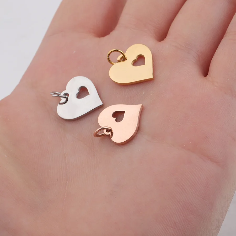 5 шт.лот, подвески из нержавеющей стали с полым сердцем, подвеска из розового золота, изысканное ожерелье, браслет, фурнитура для изготовления ювелирных изделий