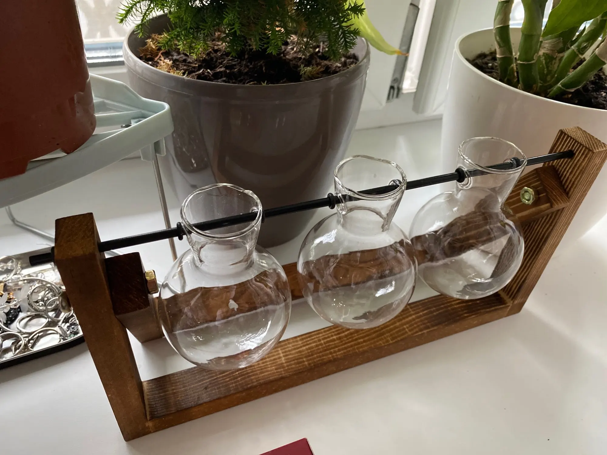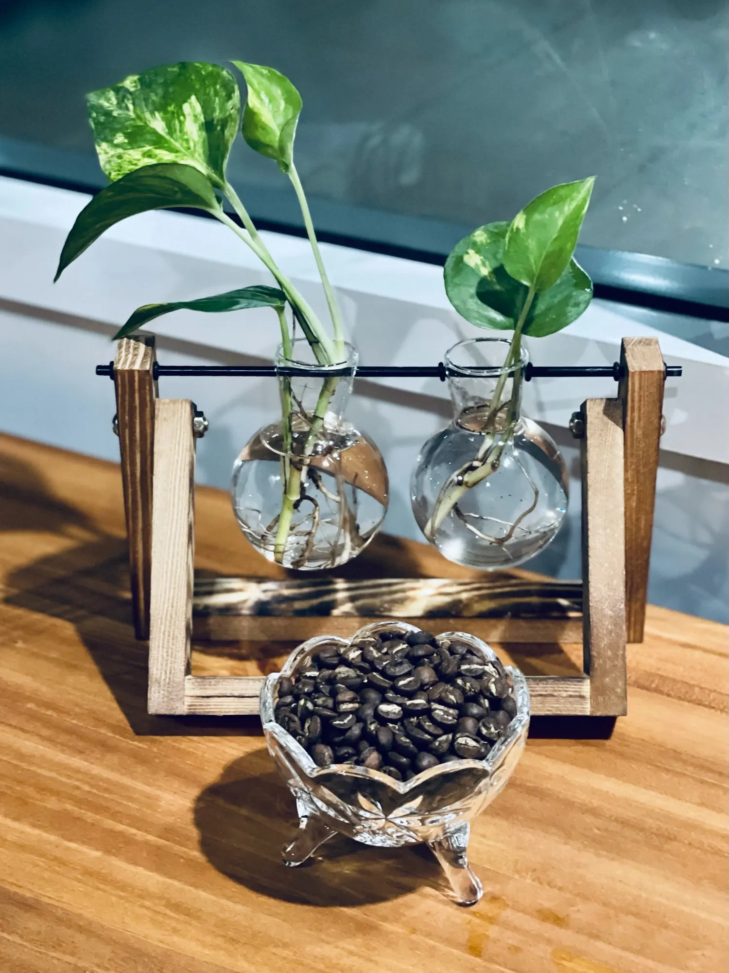 Креативная гидропонная ваза для растений, с деревянным каркасом, декоративная стеклянная настольная ваза для цветов, бонсай