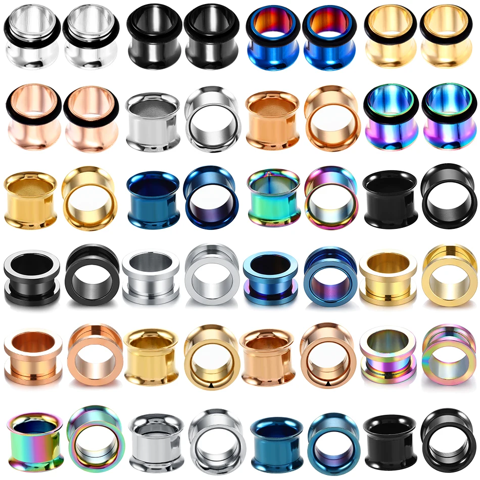 2 шт. 316L хирургические стальные расширители для ушей, прикрученные назад тоннель и заглушки, серьги, одиночные и двойные расклешенные расширения для ушей