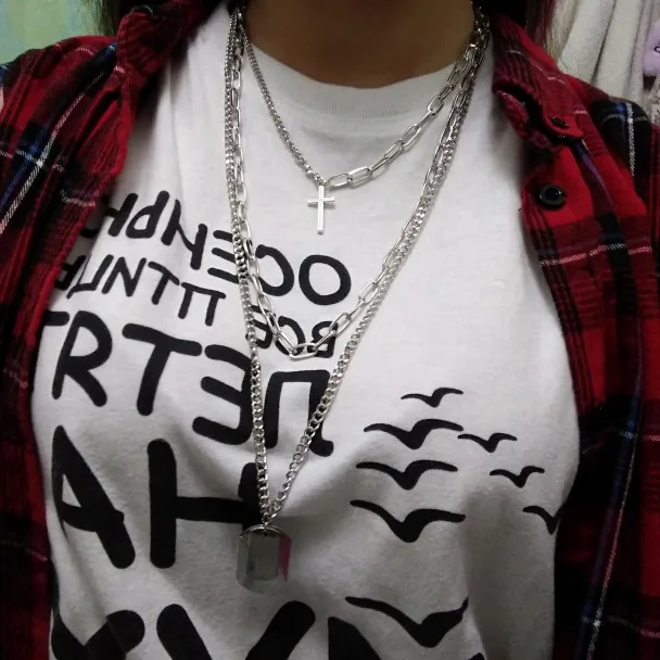 DIEZI, модное многослойное металлическое ожерелье серебристого цвета с подвеской в виде креста, пара, хип-хоп, панковские геометрические, ожерелья для женщин и мужчин