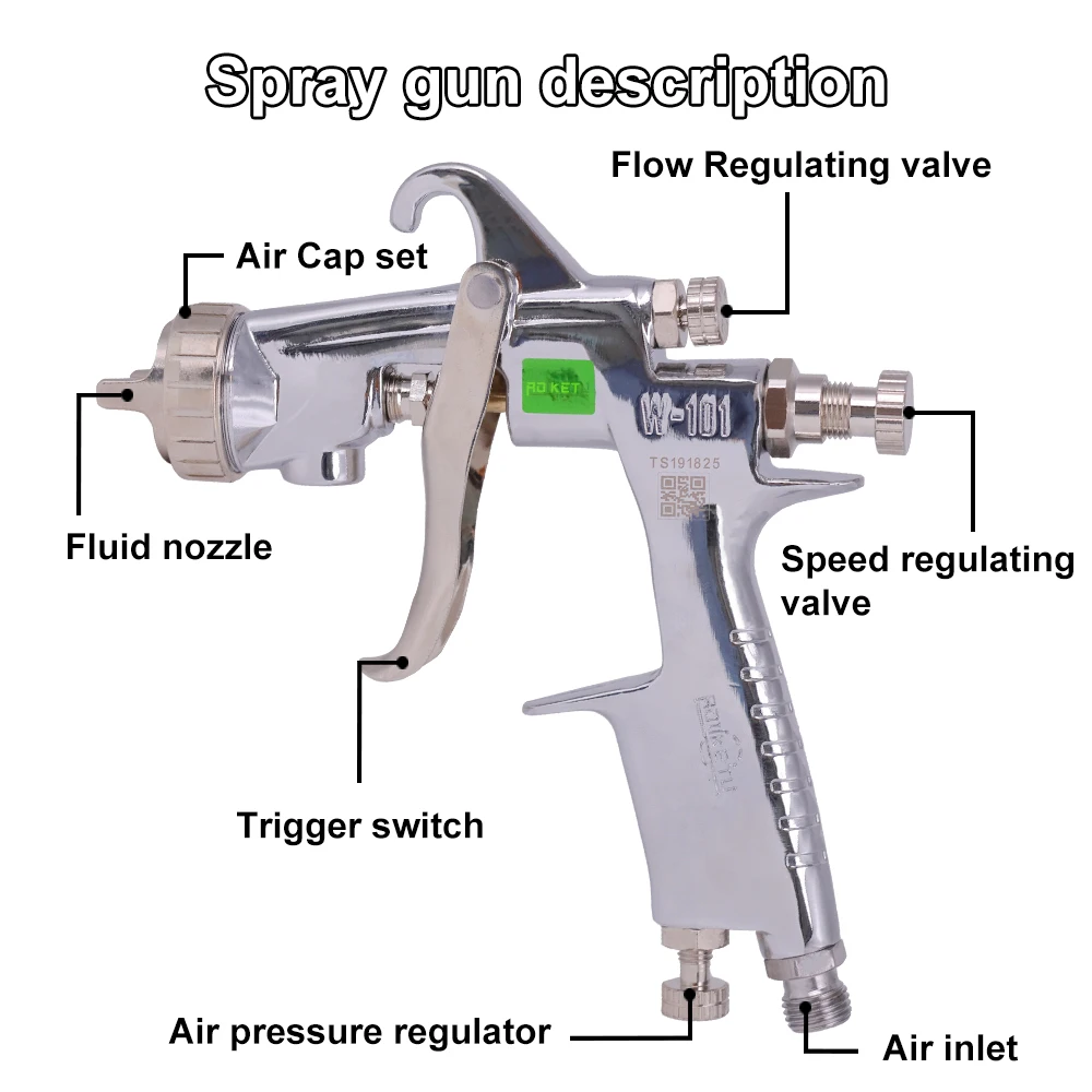 Краскопульт W101 ручной, 1,01,31,51,8 мм, пластиковый резервуар W-101 куб. См