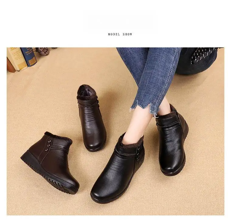 GKTINOO2022 г. Модные зимние ботинки женские теплые кожаные ботильоны Осенняя плюшевая обувь на танкетке для мам женская обувь Большие размеры 35-41