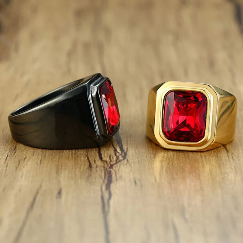 Черное мужское кольцо-вывеска из нержавеющей стали с красным Цирконом