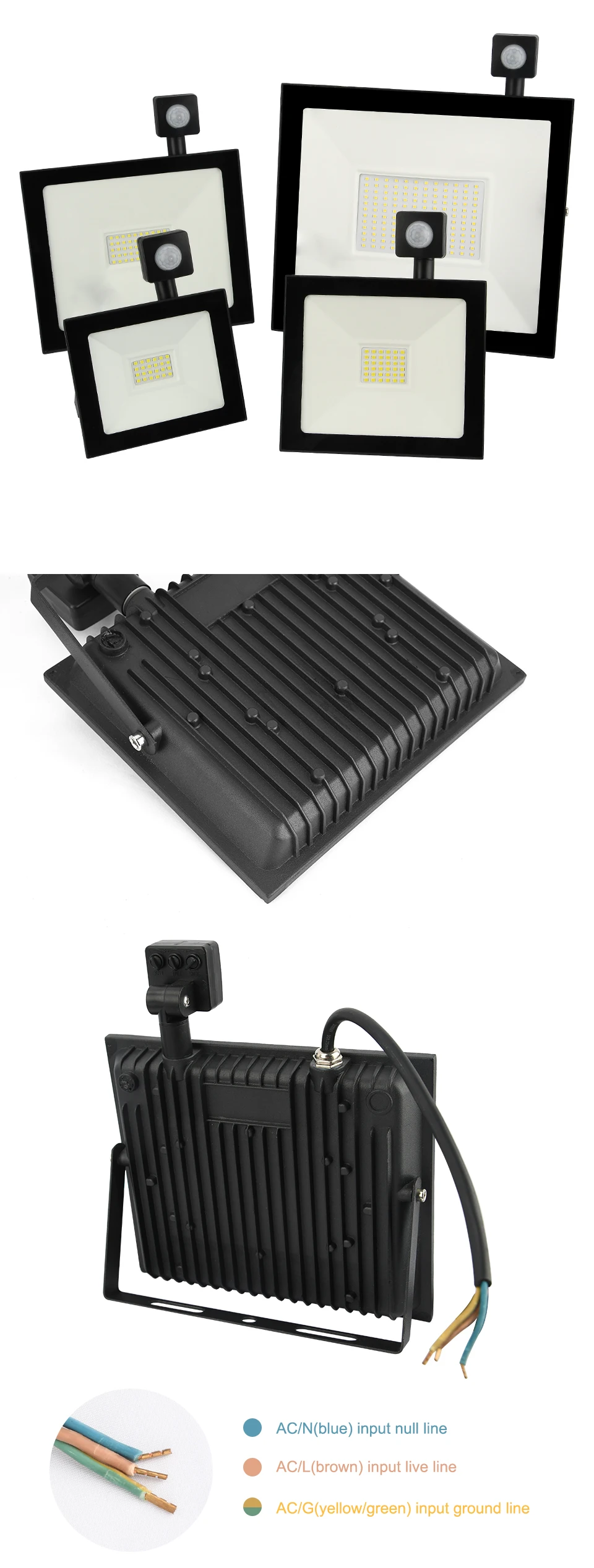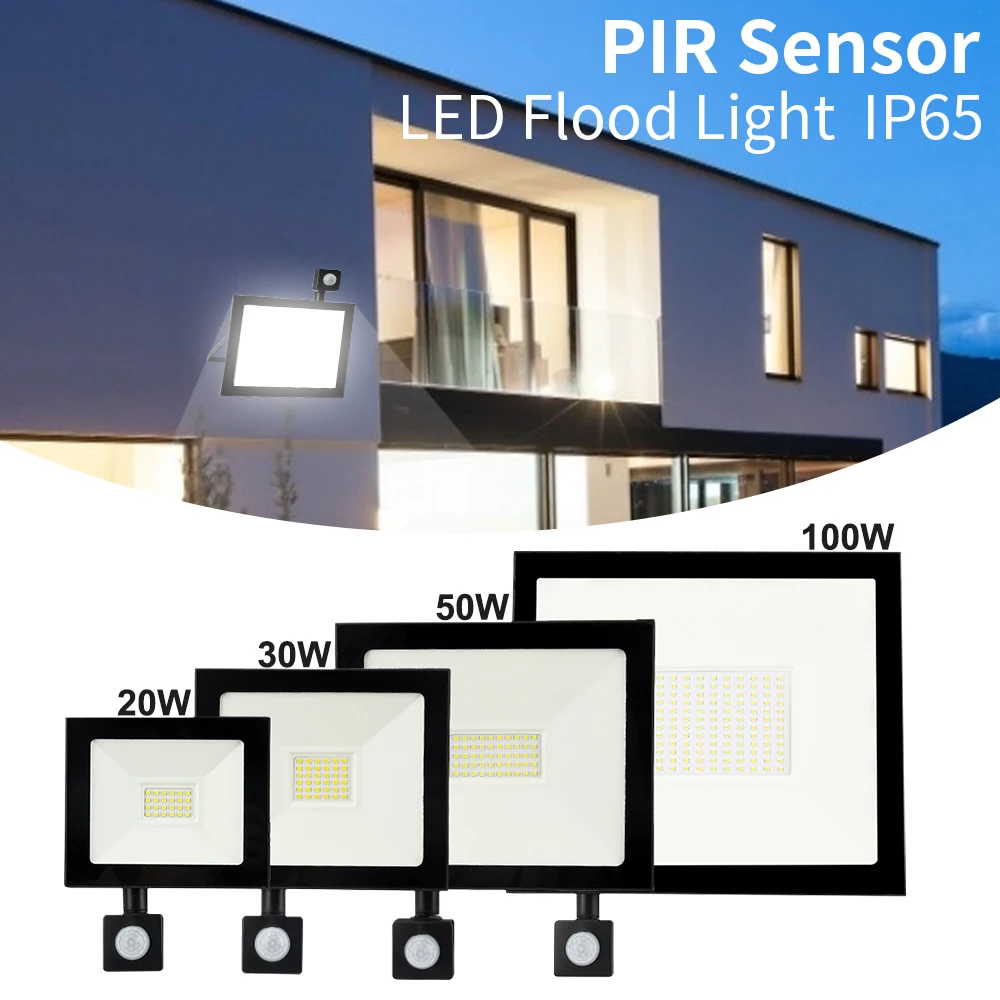Светодиодный прожектор 20 Вт 30 Вт 50 Вт 100 Вт, переменный ток 220 В, инфракрасный датчик движения, регулируемая настенная лампа, водонепроницаемая наружная поисковая лампа, точечный светильник