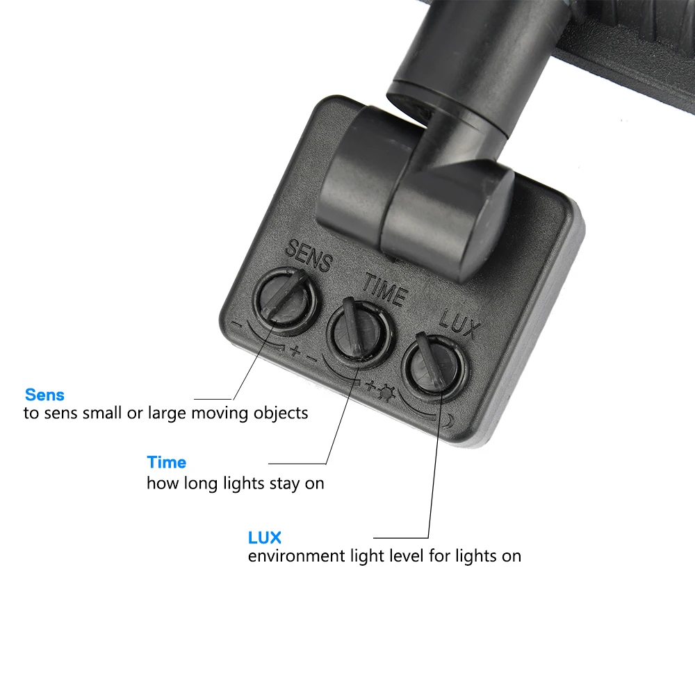 Время: отрегулируйте время, когда светильник потока задерживается, когда человек покидает диапазон обнаружения (Отрегулируйте продолжительность в течение 6 секунд до 6 минут)