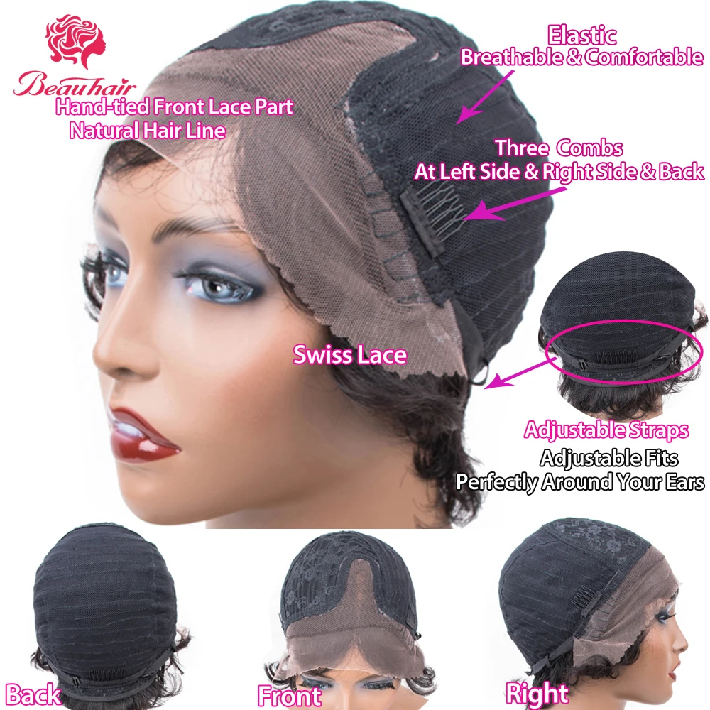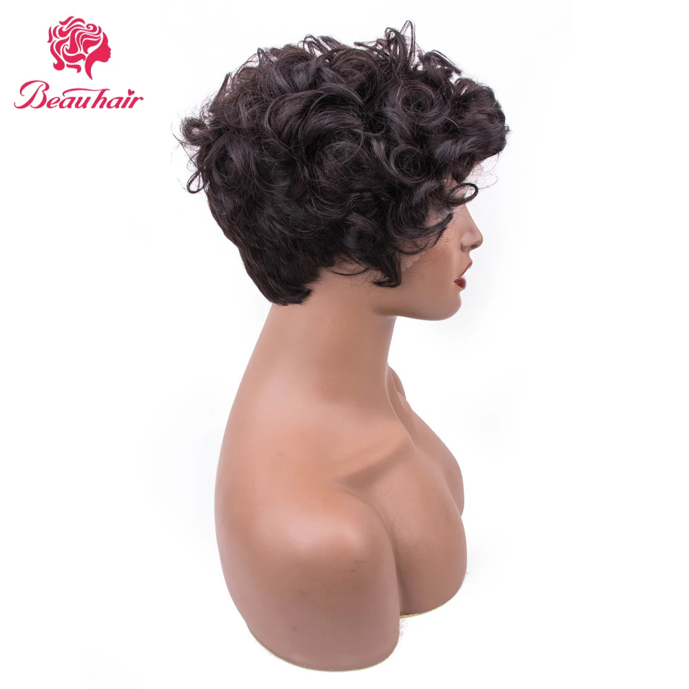 Бразильские короткие вьющиеся волосы, парики без повреждений, бразильские волосы, парик на сетке, 100% натуральные волосы, парики на сетке 6 дюймов для черных женщин, Beauhair