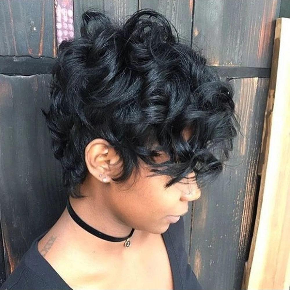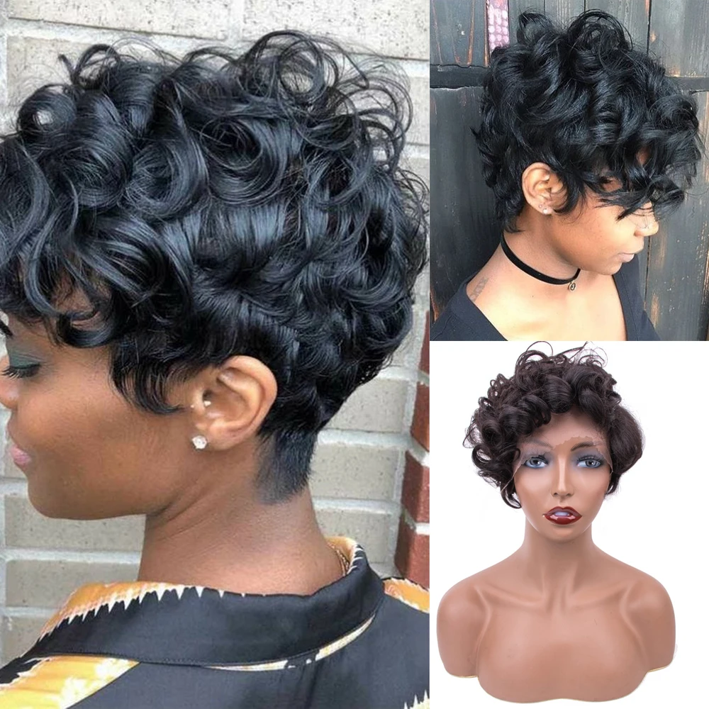 Парик с коротким Бобом фея, парики из человеческих волос с волнисты...