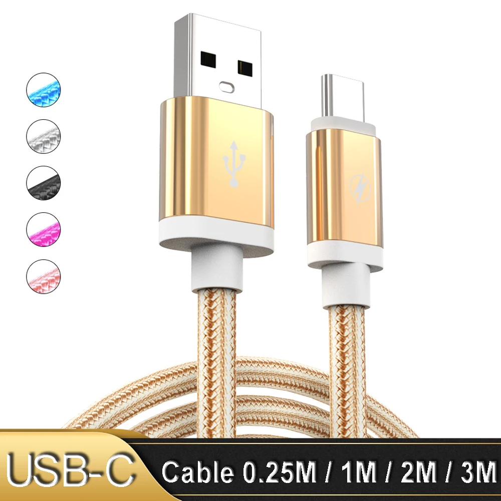 Кабель для быстрой зарядки type-C, 0,25 м, 1 м, 2 м, 3 м, type C, usb-кабель для зарядного устройства типа C, нейлоновый провод для huawei P3o Pro OnePlus 7 Pro