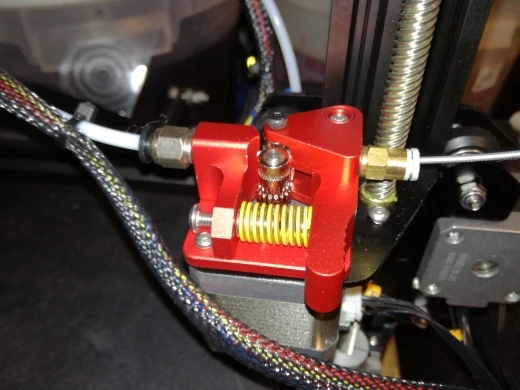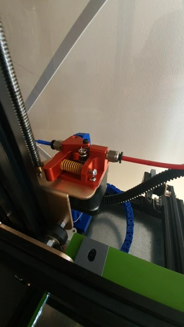 Очень быстрая доставка, хорошее качество: подшипниковая передача работает на разумной оси, не как дешевые модели на винте (игольчатый роликовый подшипник быстро разрушен). Изменение нити действительно несколько чище, чем раньше, с marlin-script/gcode, но быстро и безопасно сделано.