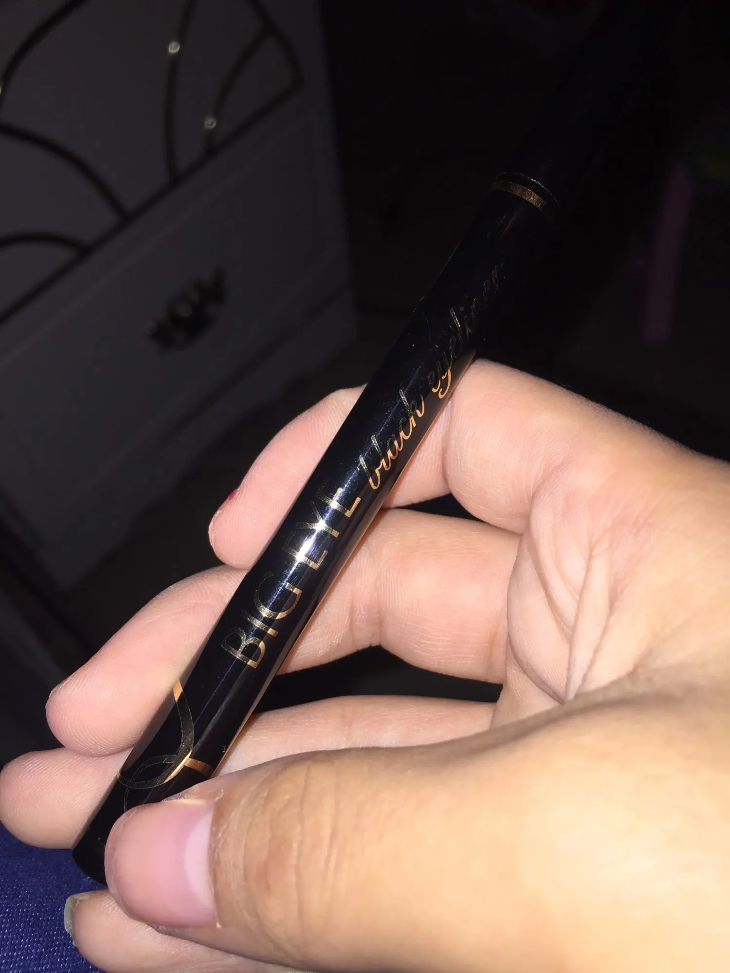 полводка с идеальным стержнем,стрелки получаются афигенные даже если вы их не умеете рисовать.Правда подводка видимо не водостойкая после смеха со слезами-стрелка поплыла.Пришлось подводить по несколько раз за день