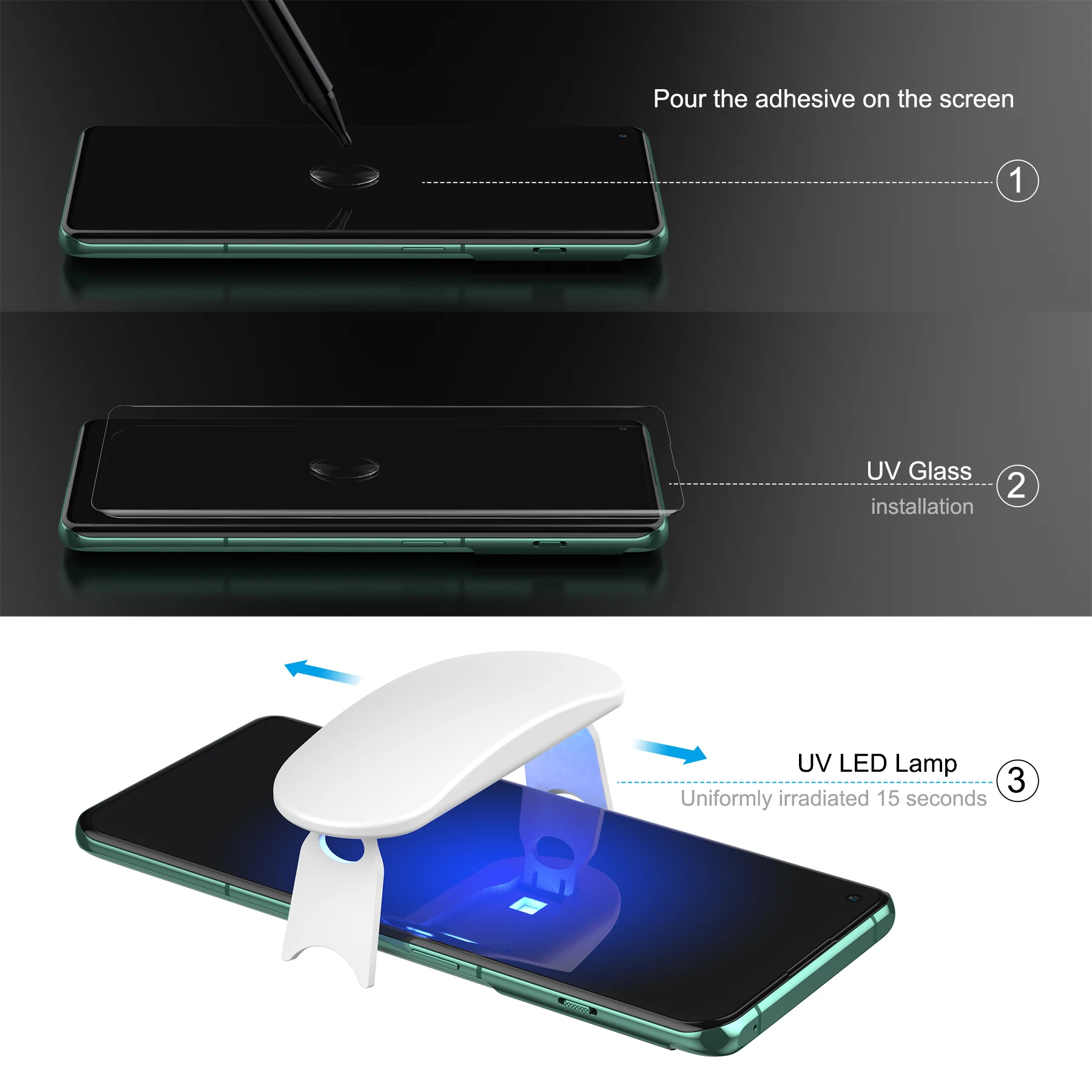 Шаг 7: облучите мобильный телефон под УФ лампой и нужно дважды осветить около 3 минут, чтобы достичь полностью излеченного положения.