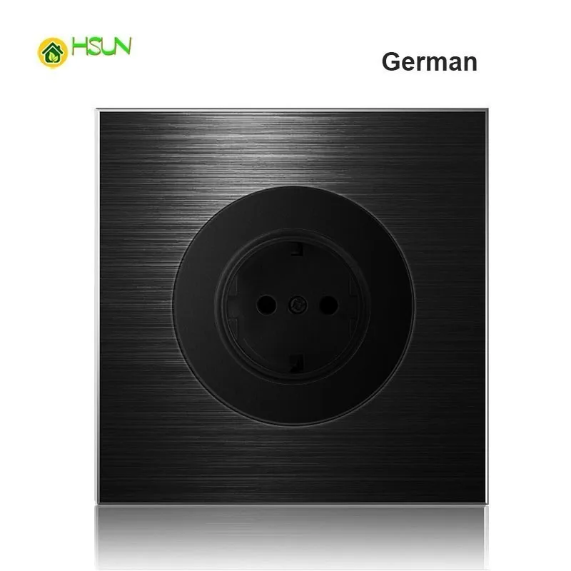 86 Тип 1 2 3 4 банды 1 2way Черный алюминиевый сплав панель Переключатель Розетка пять отверстий Европа промышленность переключатель Франция Германия Великобритания розетка