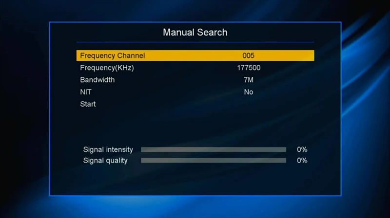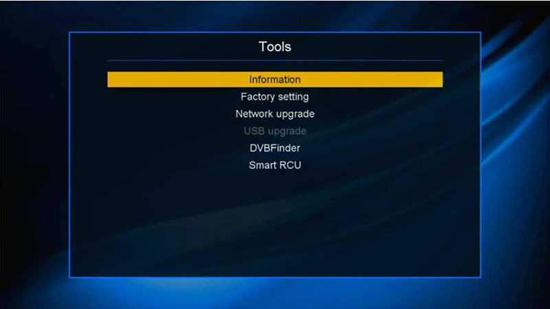 В списке спутников нажмите кнопку «желтый», чтобы войти в менюИнтерфейс «списка транспондеров», как показано на следующем рисунке:В нижней части экрана расположены следующие функциональные клавиши:1> нажмите красную кнопку, чтобы войти в меню «Поиск транспондера»Интерфейс и выберите «да/нет».2> Нажмите Зеленую кнопку, чтобы войти в интерфейс меню «ДобавитьЭкспедитор ". Вам нужно добавить «частоту», «скорость символа» и"Полярность" экспедитора. После редактирования выберите «сохранить/отменить».3> нажмите желтую кнопку, чтобы войти в интерфейс редактирования транспондера,Где вы можете редактировать частоту, скорость символа и полярностьТранспондер и выберите Сохранить/отменить после редактирования.4> нажмите синюю кнопку, чтобы войти в интерфейс удаления, чтобы удалить всеЭкспедиторы, и выберите Да/Нет.5> нажмите OK, чтобы выбрать текущий транспондер.3,2 терретрибПодключите сигнальную линию DVB-T, выберите страны и регионы, установитеСоответствующие параметры, затем нажмите «автоматический поиск» или «Ручной поиск ".Кабель: Подключите сигнальную линию DVB-C и установите соответствующие параметры.4. Просмотр информации о версии инструмента, обновление и другие функции:ИнформацияВышеуказанные параметры: номер версии,Прикладная программа, аппаратная версия,S/N, сайт, электронная почта.