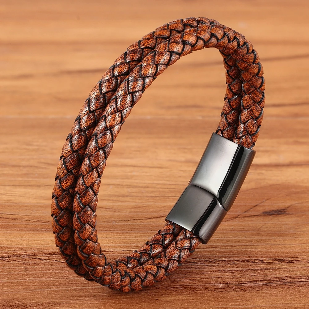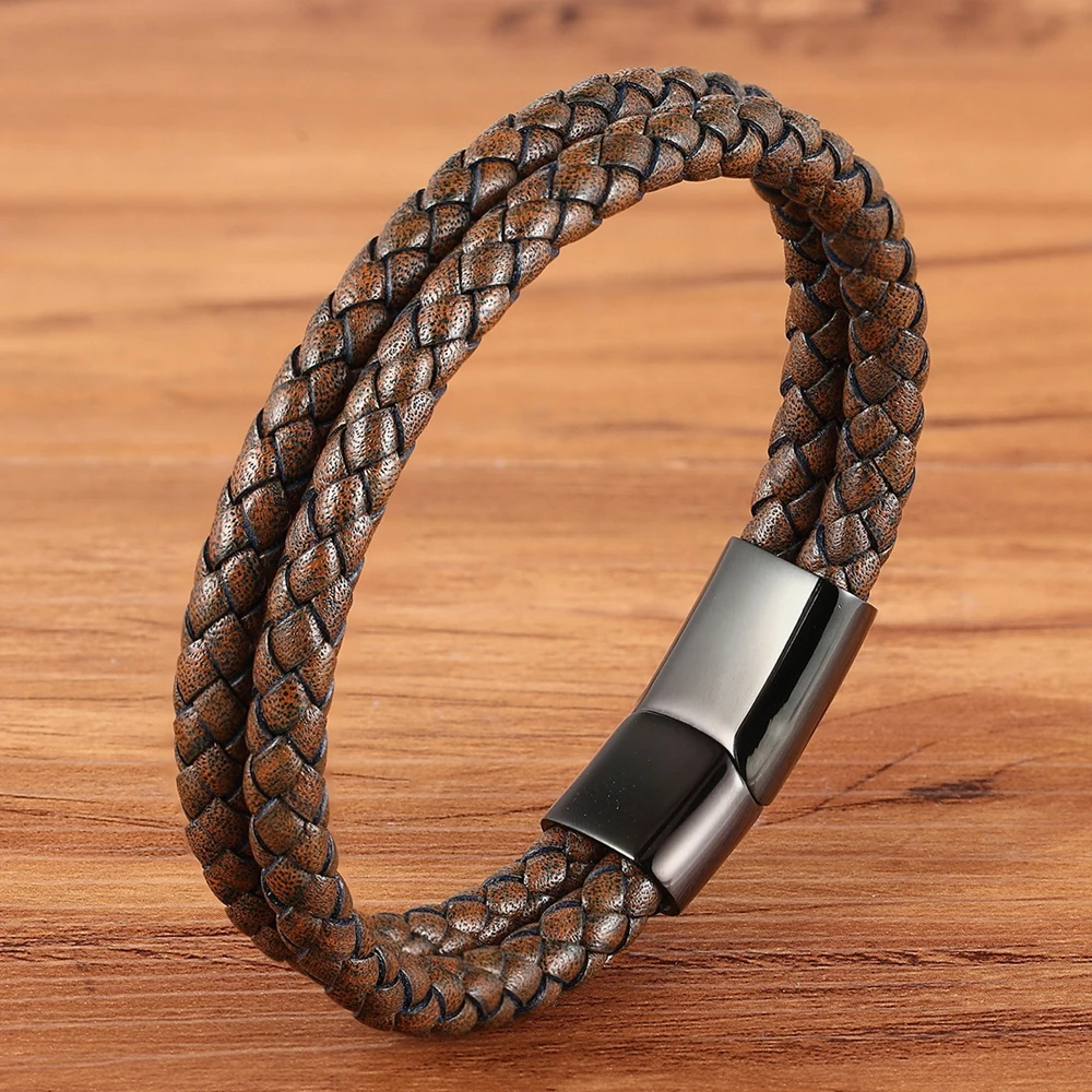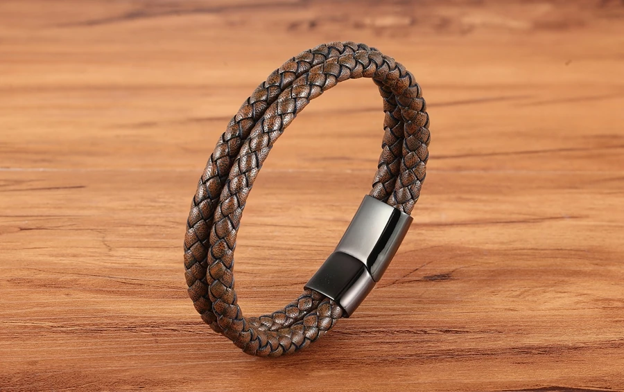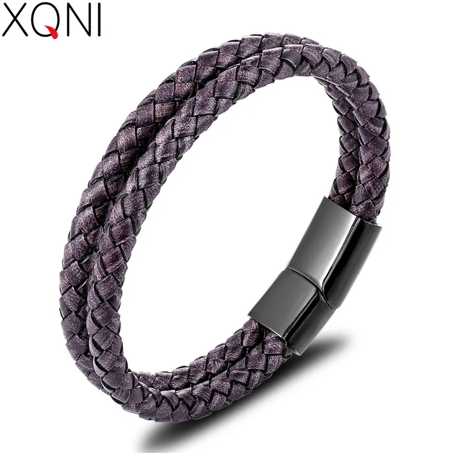 Мужской кожаный браслет XQNI, черный простой браслет из нержавеющей стали с пуговицами, цветной деловой наряд, подарок на день Святого Валентина