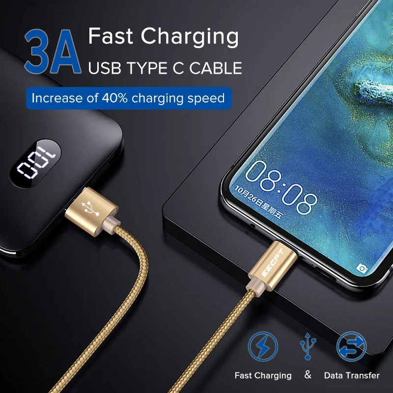 Кабель EECPT USB Type-C 3A для быстрой зарядки и передачи данных, з...