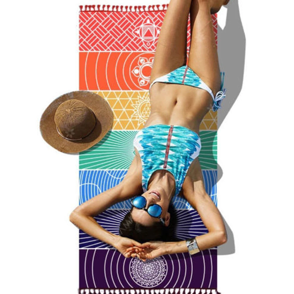 1 шт., Радужный пляжный коврик в стиле бохо, одеяло с мандалой, полосатый настенный гобелен, летнее пляжное полотенце, коврик для йоги