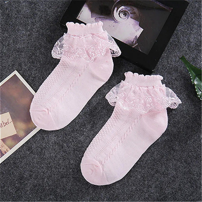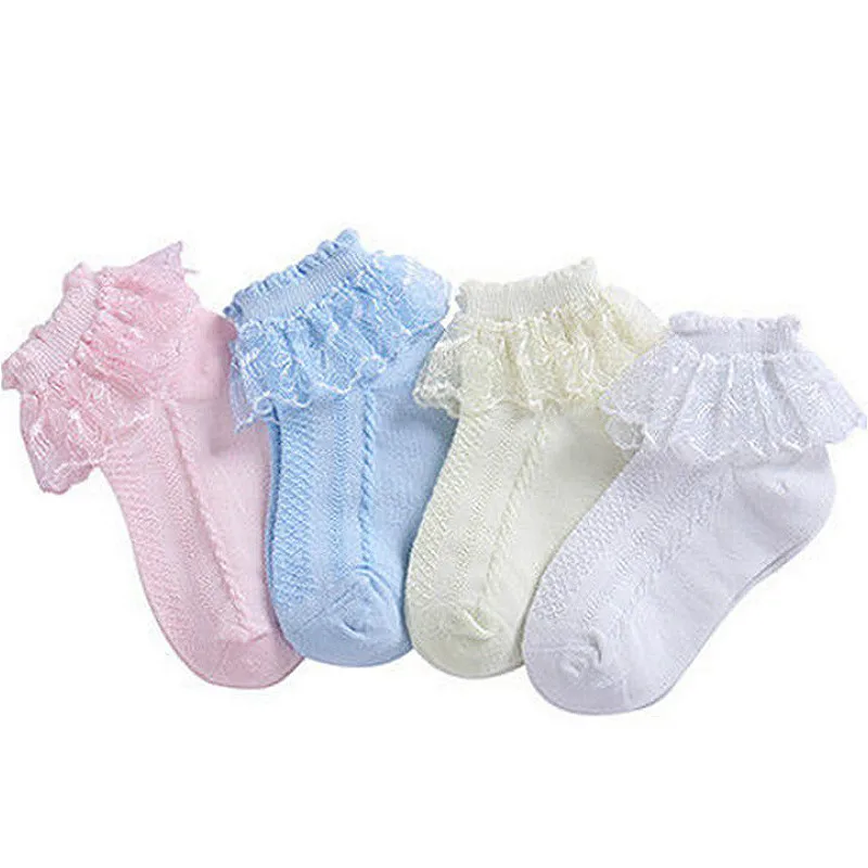 Дышащие хлопковые кружевные сетчатые носки принцессы с оборками Детские короткие носки белые, розовые, желтые носки для маленьких девочек