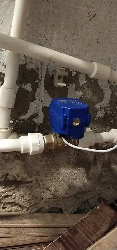 Подаст сигнал тревоги и отключит электрический клапан после того, как датчик воды обнаружит утечку воды. Клапан может остановить