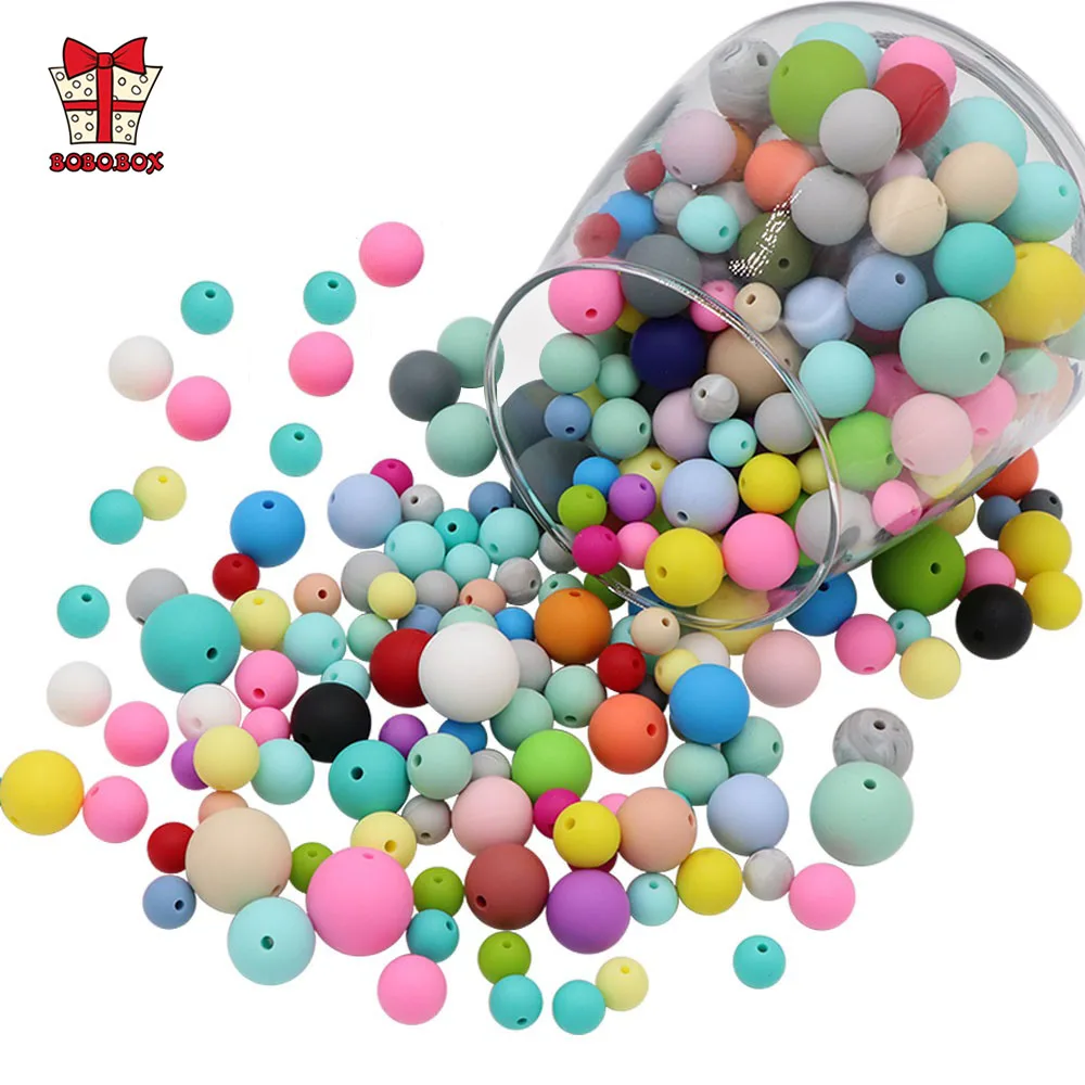 BOBO. Коробка 100 шт./лот Силиконовые бусы Детские Прорезыватель для зубов 9/12/15 мм Детские Прорезыватели для зубов для соски с цепочкой, силиконовый Прорезыватель для зубов без добавления бисфенола А