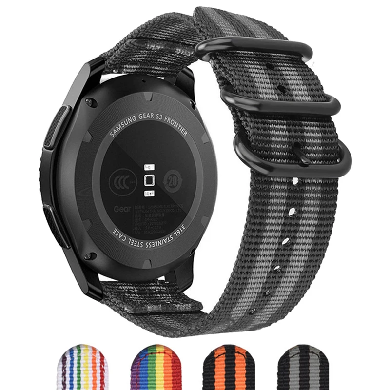Ремешок нейлоновый для наручных часов, полосатый Радужный холщовый сменный Браслет для Samsung Gear S2S3 Galaxy 42 мм 46 мм, 20 мм 22 мм 24 мм