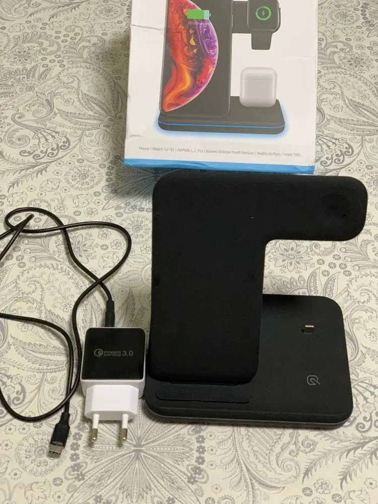 Очень быстрая доставка. Хорошо упаковано и вроде заряжает все три девайса одновременно. Ничего не коротит, не пищит. С какой скоростью заряжает, пока сказать не могу, но использовать буду как ночную зарядку - так что не проблема. Выглядит - очень стильно в белом исполнении. Если что, дополню отзыв.