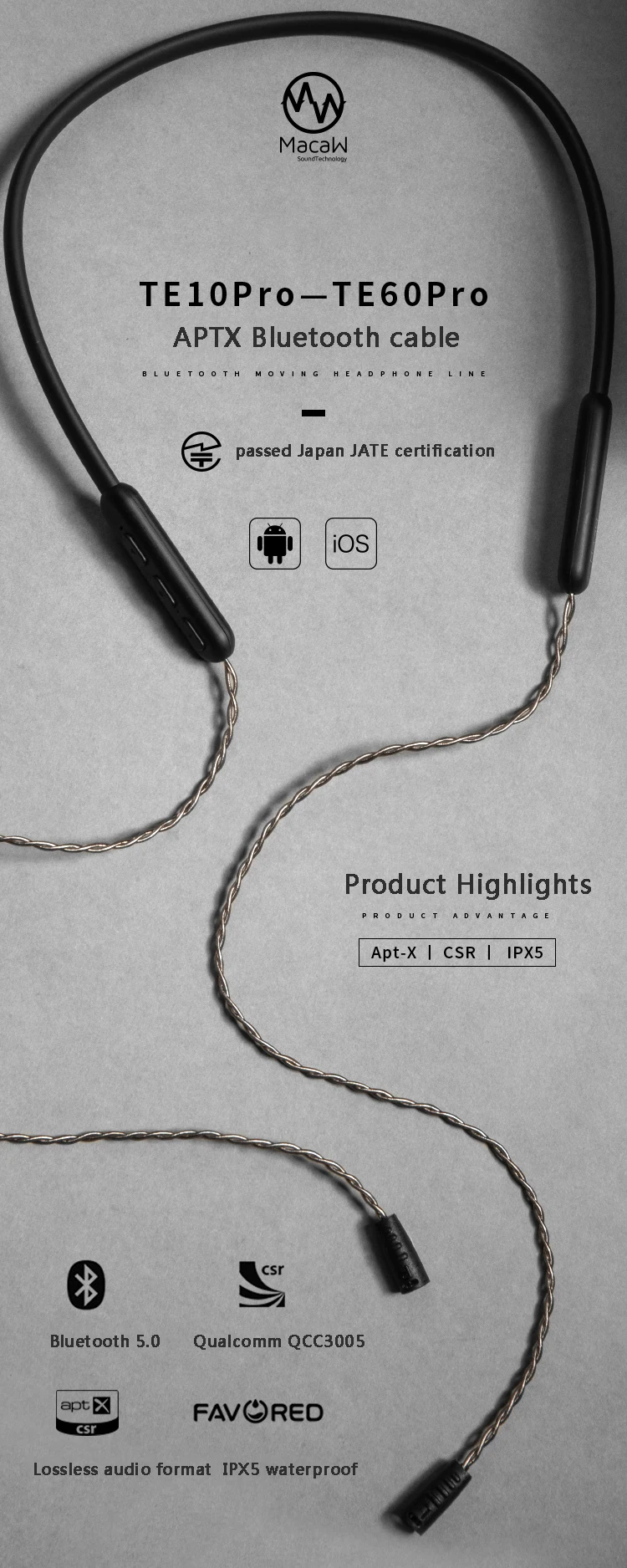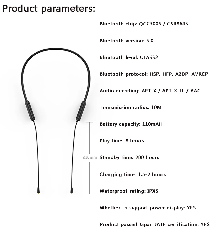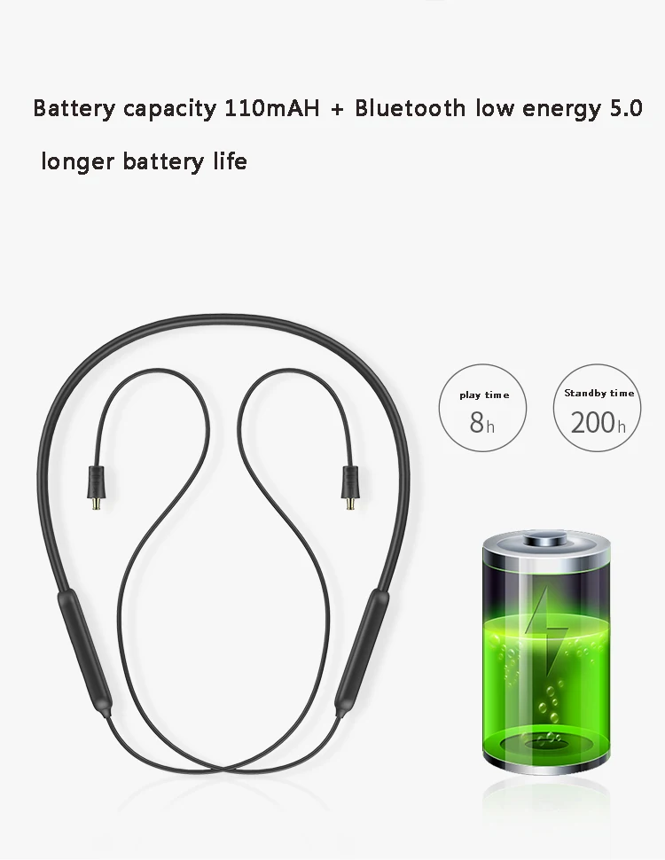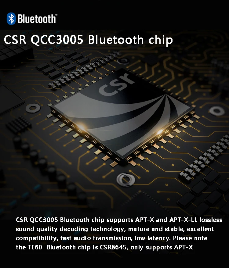 CSR QCC3005(TE10 PRO-TE60 PRO MMCX универсальный, Audio-technica A2DC, 2 контакта 0,78 мм, Audio-technica IM серия, Sennheiser IE серия) чип Bluetooth поддерживает APT-X, APT-X-LL, AAC, технология декодирования качества звука без потерь, зрелая и стабильная, отличная совместимость, быстрая передача звука, низкая задержка