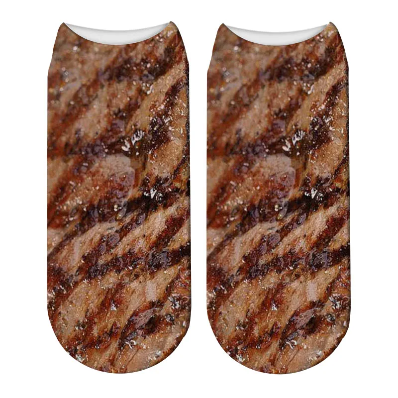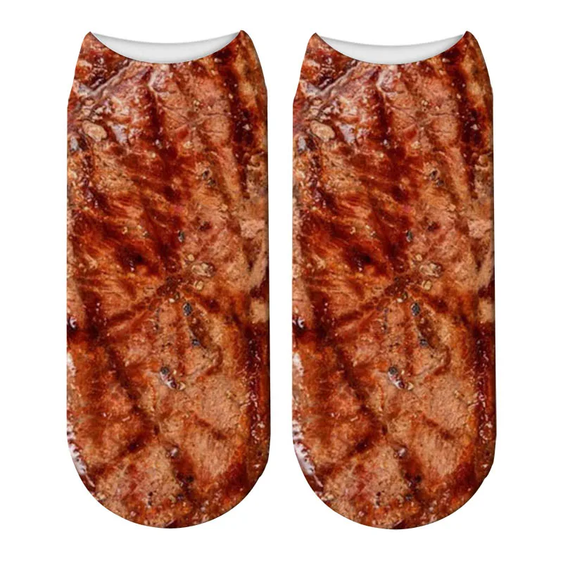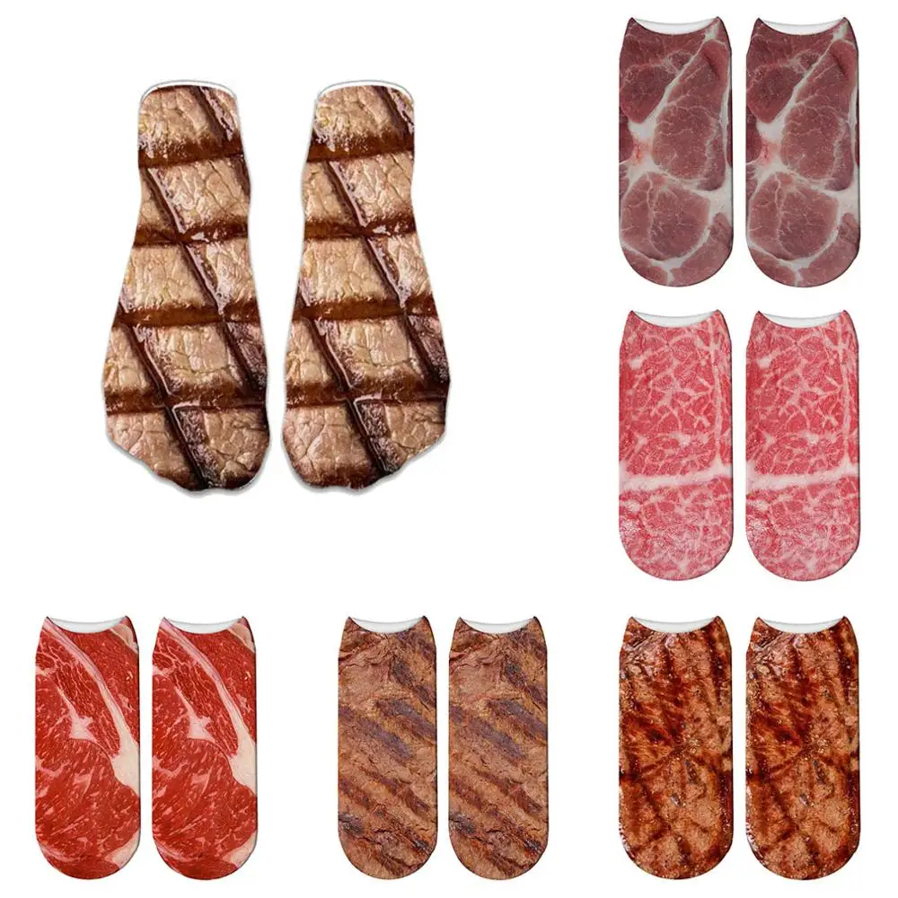 Забавные носки для барбекю с 3D принтом, короткие женские носки с принтом свиного живота, новые ужасные носки, модные милые низкие носки до щиколотки для мужчин 5ZWS62