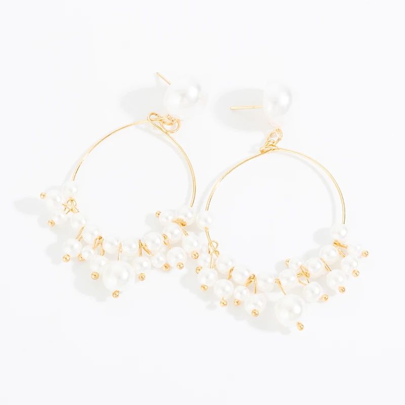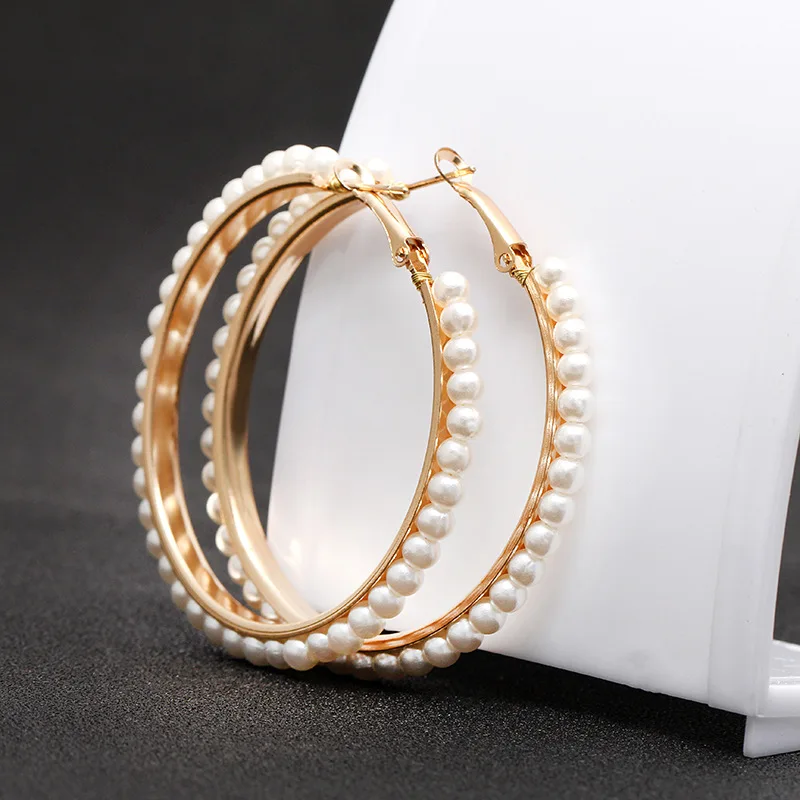 Корейская версия холодного ветра, сказочный темперамент, жемчужный круг, преувеличенный индивидуальный дикий большой круг, свадебные серьги сережки