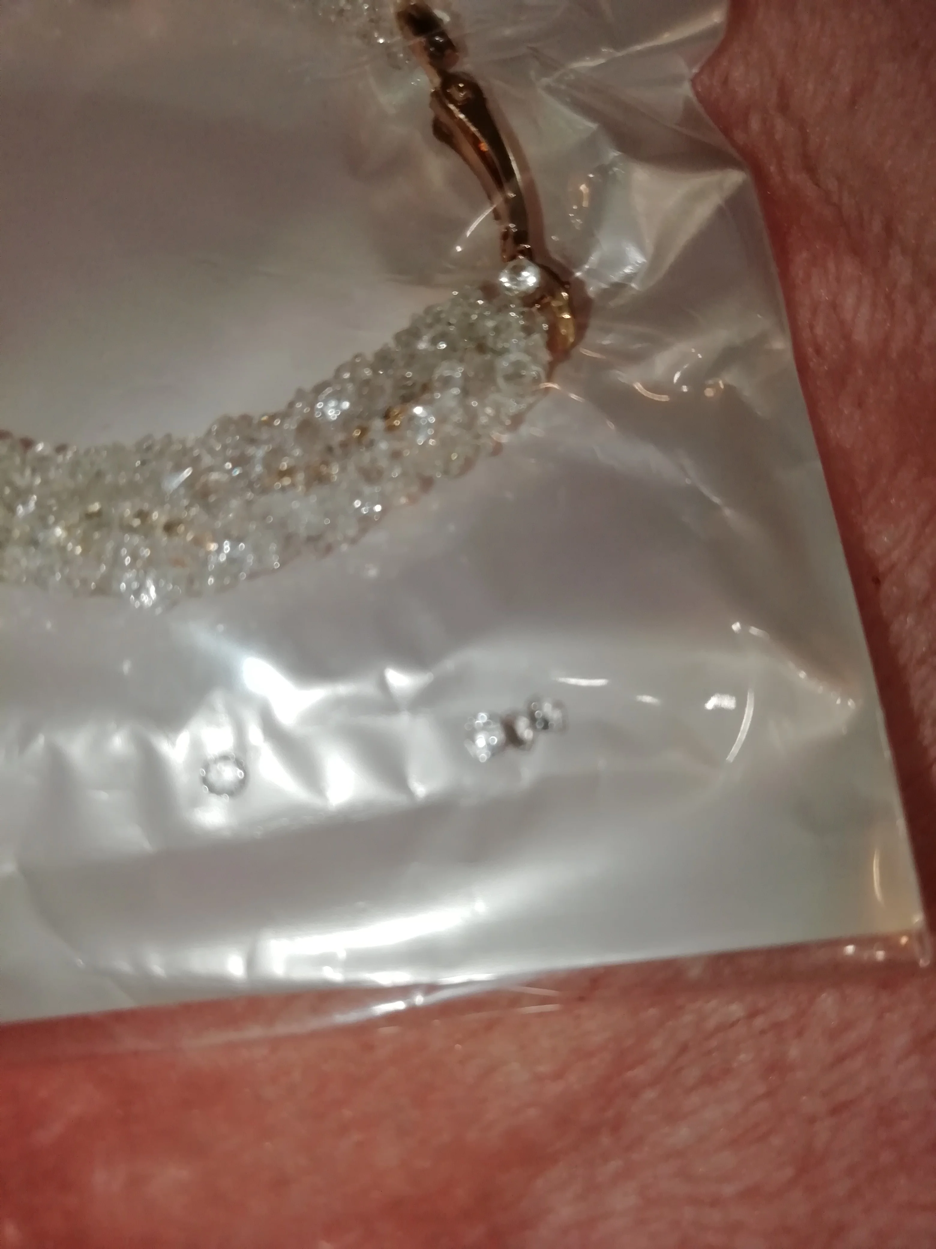 Камни словно на двустороннем скотче, поэтом обе сережки прилипли друг к другу. Рассоединить удалось без повреждений, поэтому 5 звезд. Продавец подумай над упаковкой, пакет это не самое лучшее решение. У половины заказанных сережек погнуты гвоздики. Дошли быстро. Смотрятся хорошо.
