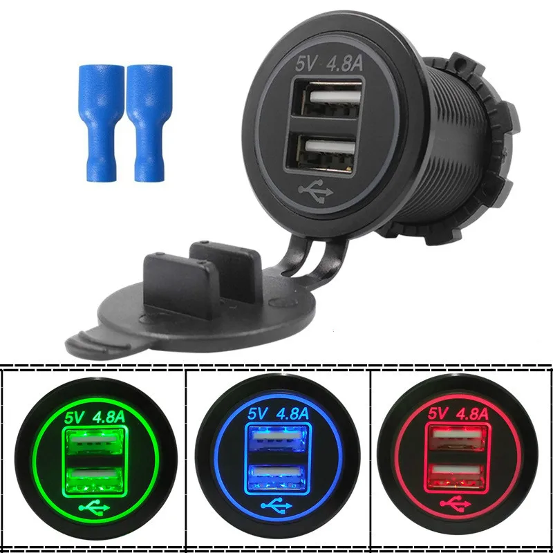 DIY 4.8A двойное зарядное устройство USB, водонепроницаемая розетка, двойной USB адаптер быстрой зарядки для iPhone, смартфонов, автомобилей, лодок, морских автомобилей, RV