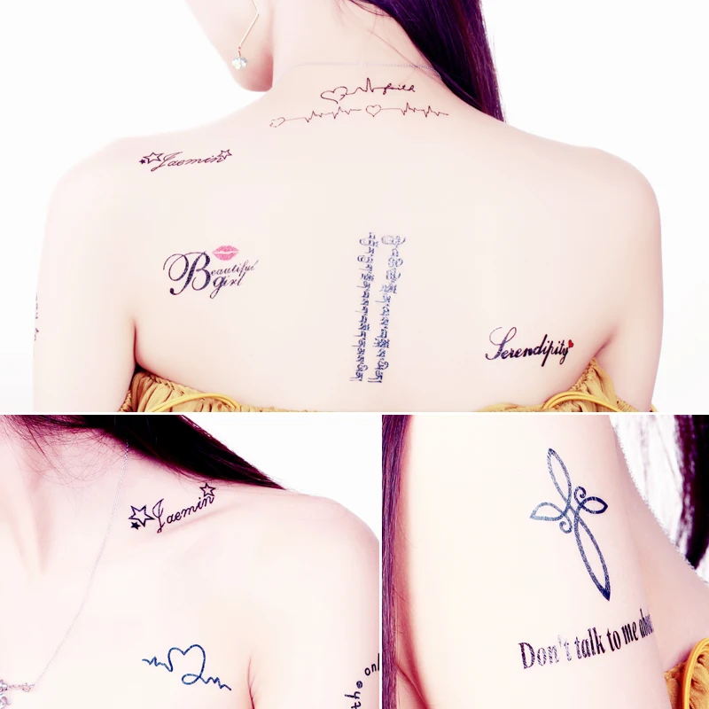 Наклейка-Татуировка Водонепроницаемая 60 шт., буквы и арабские узоры, искусственная татуировка, боди-арт, временные татуировки для женщин и мужчин