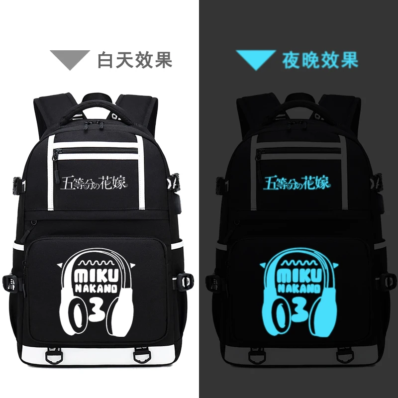 Куинтэссенция кинтуплеты женский милый рюкзак Nakano Miku Kawaii Bookbag usb зарядка Ноутбук Рюкзак Холст Школьные сумки