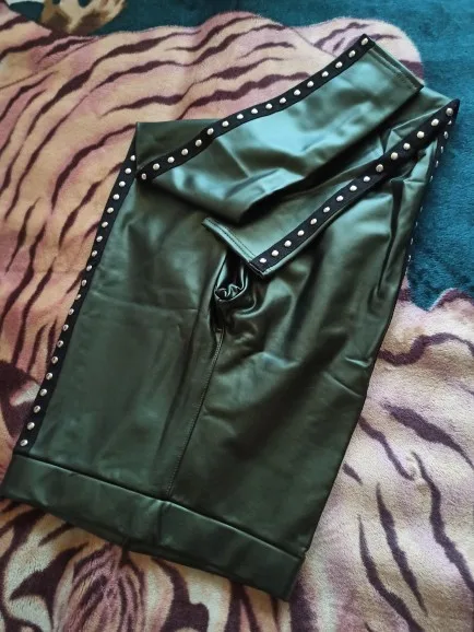 Женские бархатные брюки из ПУ кожи, с заклепками