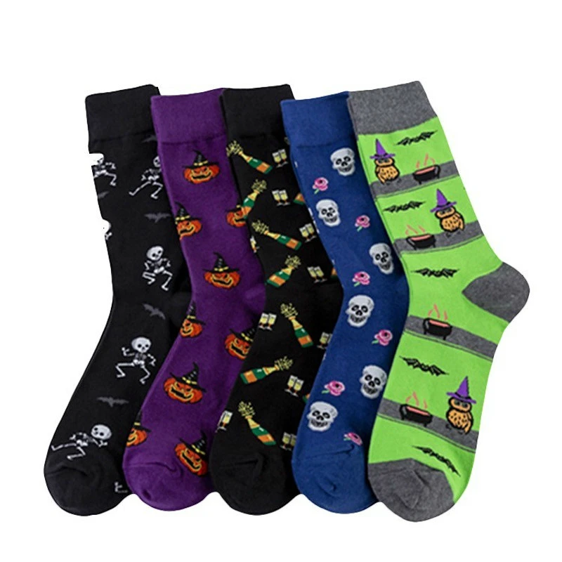 Новинка 2020, Осень-зима, носки для мужчин, новинка, сова со скелетом-тыквой, рисунок на Хэллоуин, счастливые носки, хлопок, комфорт, Calcetines Hombre