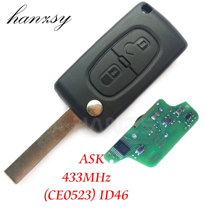 Ключ-раскладушка для автомобиля PEUGEOT 433, 407, 307, 207, 308, 807 МГц, 2 кнопки, чип ID46, VA2HU83 blade CE0523