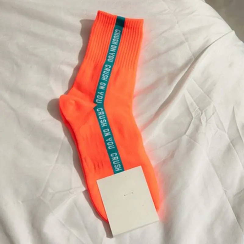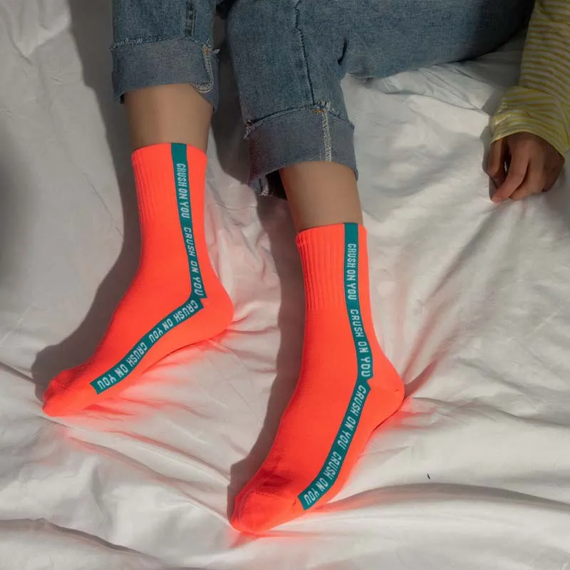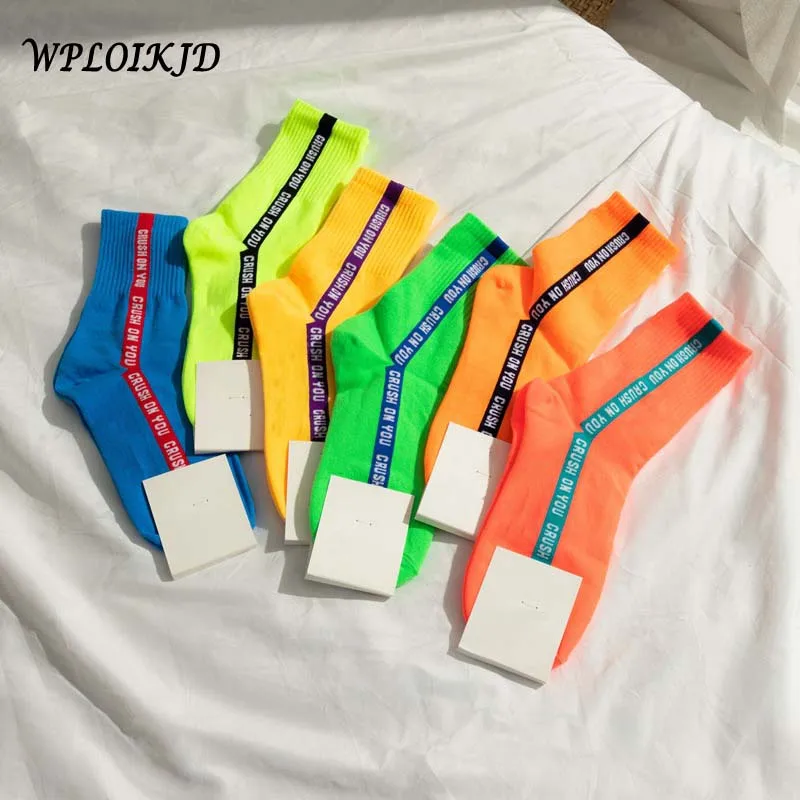 WPLOIKJD женские носки японские хлопковые Харадзюку флуоресцентные цветные яркие цветные Мультяшные милые смешные счастливые женские носки Skarpetki
