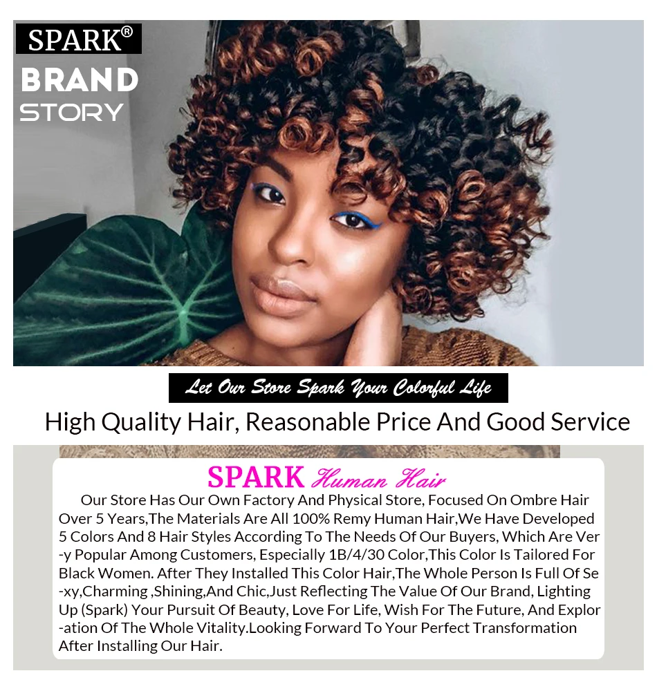 Бразильские волосы с эффектом омбре Spark, 3 или 4 пучка с застежкой, человеческие волосы без повреждений, удлинители, свободные волнистые вьющиеся натуральные черные волосы