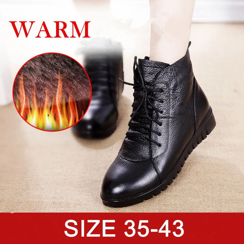Женские Теплые ботильоны SWYIVY, черные повседневные ботильоны из натуральной кожи на меху, водонепроницаемая обувь 43, для зимы, 2019