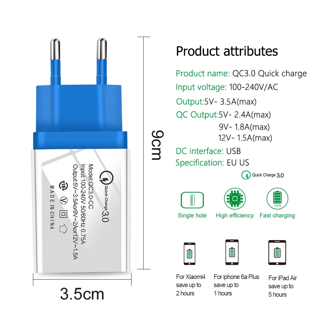Зарядное устройство Quick Charge 3,0 с USB-портом, зарядное устройс...