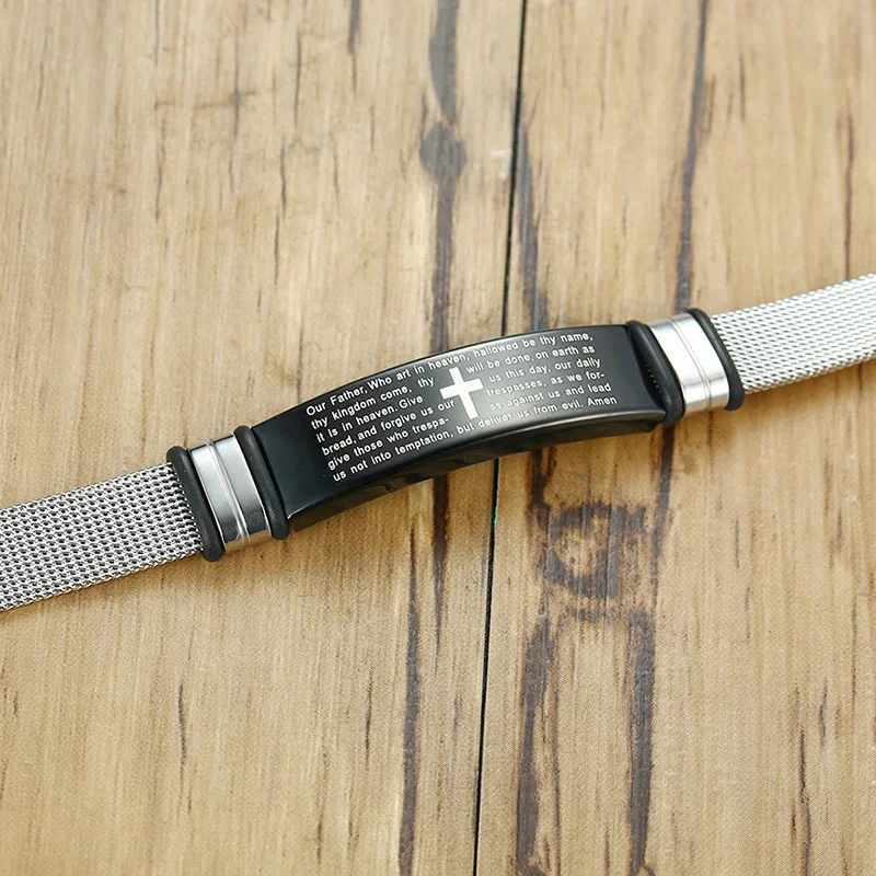 Английский Пособия по немецкому языку в Корейском стиле французский Библия молитва Нержавеющаясталь браслет Для мужчин ювелирные изделия