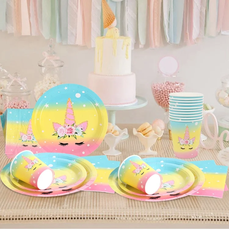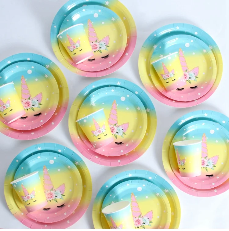 Украшение для дня рождения в виде единорога, столовая посуда в виде единорога, салфетки, игрушки для детей, для первого дня рождения, вечеринки в честь рождения ребенка, девочки