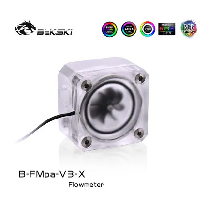 Bykski B-FMpa-V3-X,RGB Cuboid акриловый расходомер для воды, мониторинг расходомера для компьютерной системы водяного охлаждения