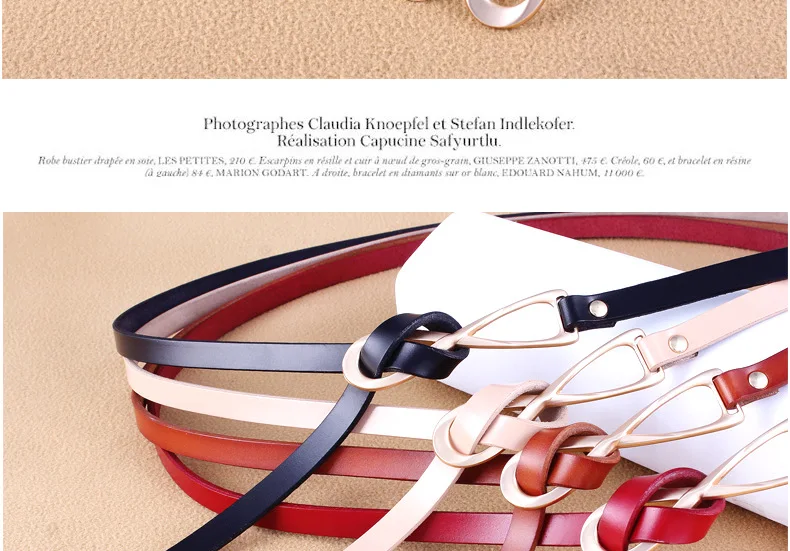 Название бренда: HUOBAO Тип изделия: ремни Пол: женщин Номер модели: YD00121 Ширина ремня: 1 см Стиль: Модный Материал ремня: натуральная кожа Тип узора: однотонный Название отдела: для взрослых Цвет кожи: черный, красный, белый Стиль: однотонный Размер: 105 см * 1 см