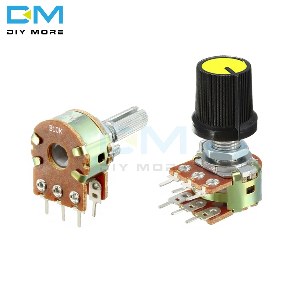 Резистор потенциометра, 10 шт., линейные конические поворотные колпачки, желтая ручка Ом, электронный B1K, B2K, B5K, B10K, B20K, B50K, B100K, B250K, B500K, 1 м