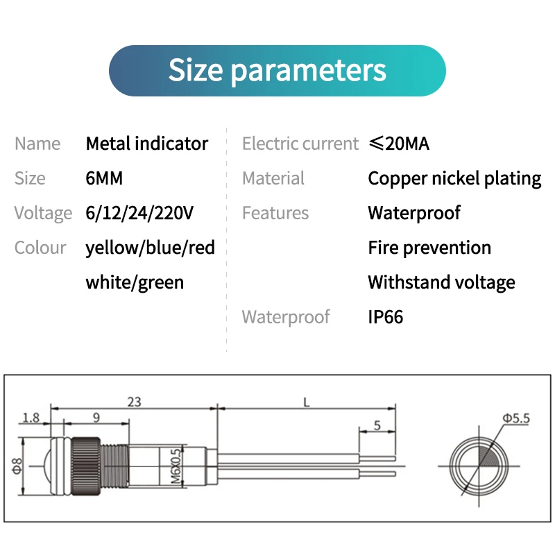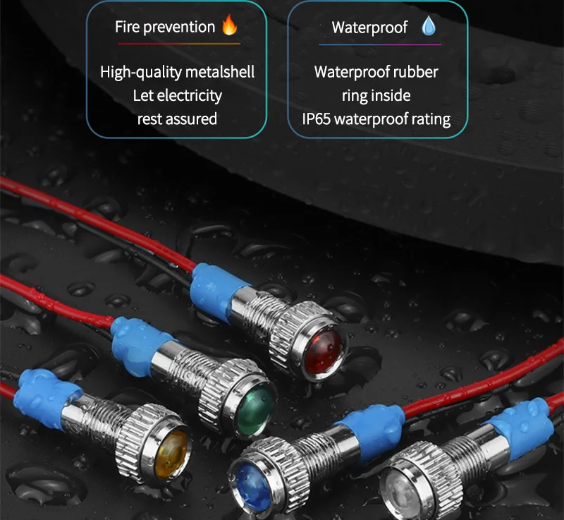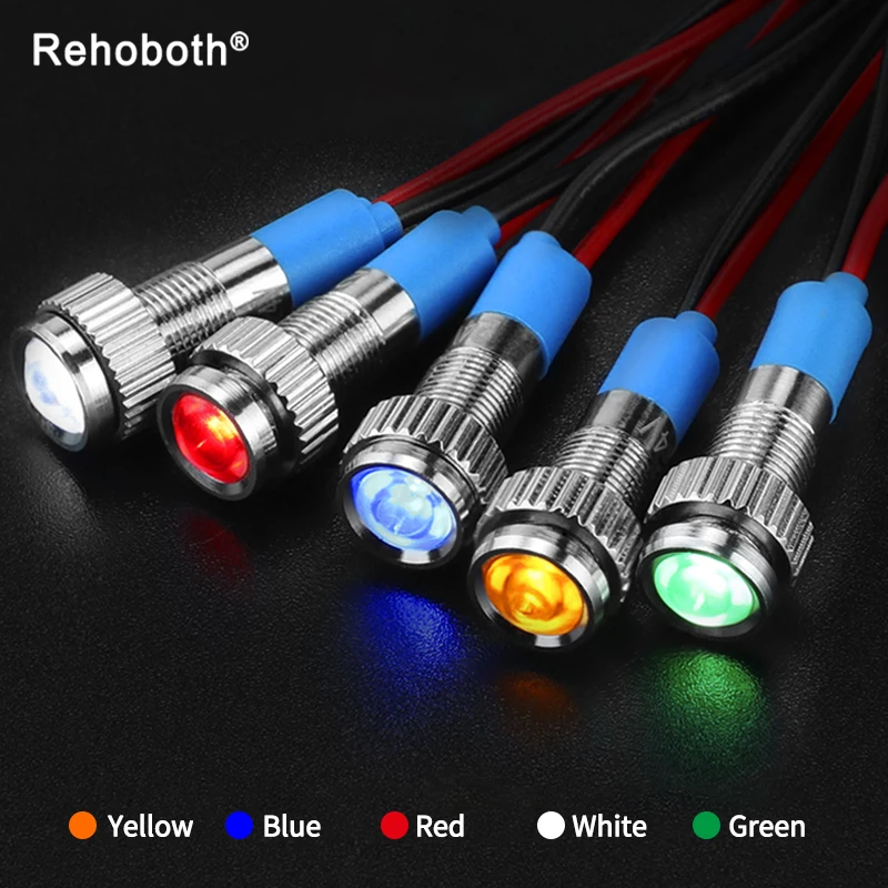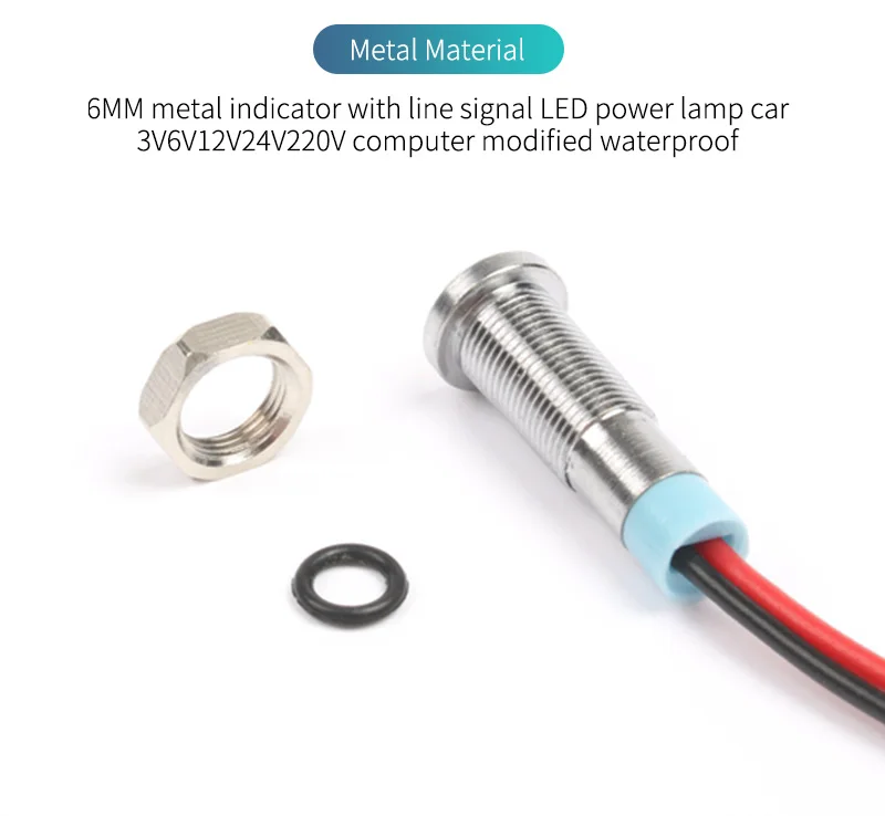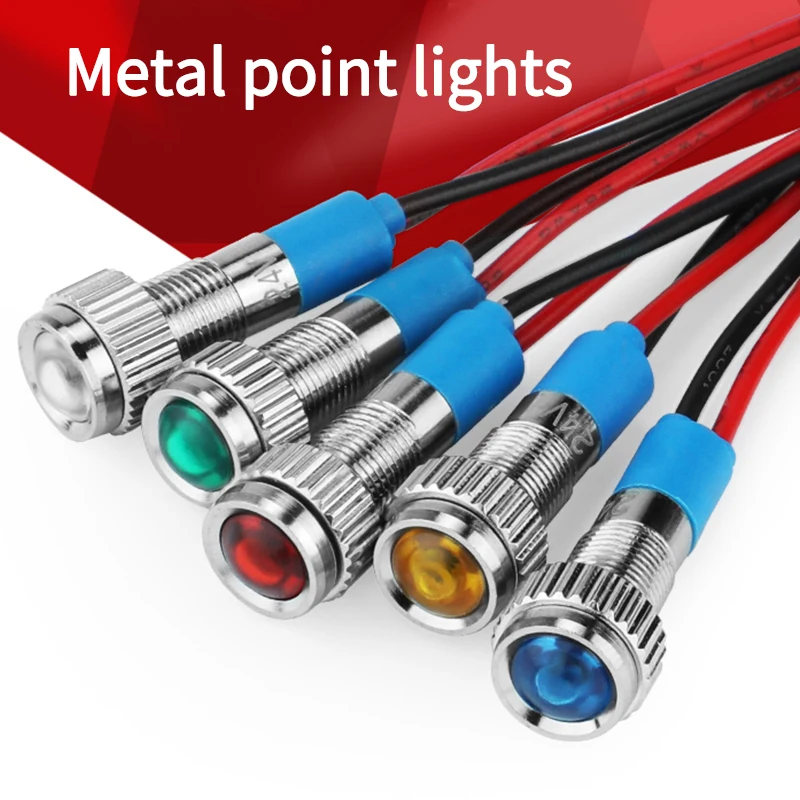 6 мм 12 В светодиодный металлический точечный сигнальный индикатор 6 мм водонепроницаемый сигнальный светильник с проводом красный желтый синий зеленый белый